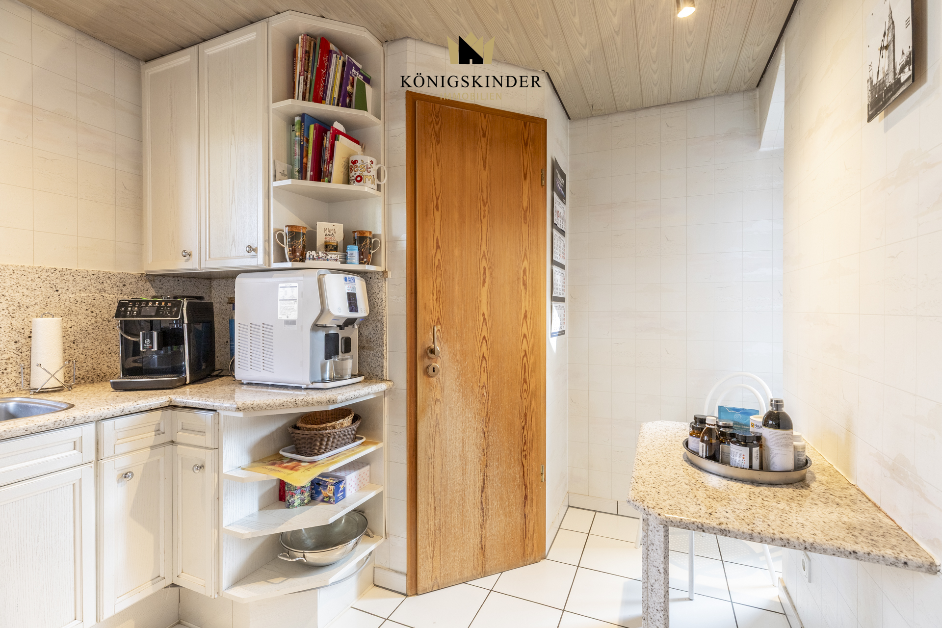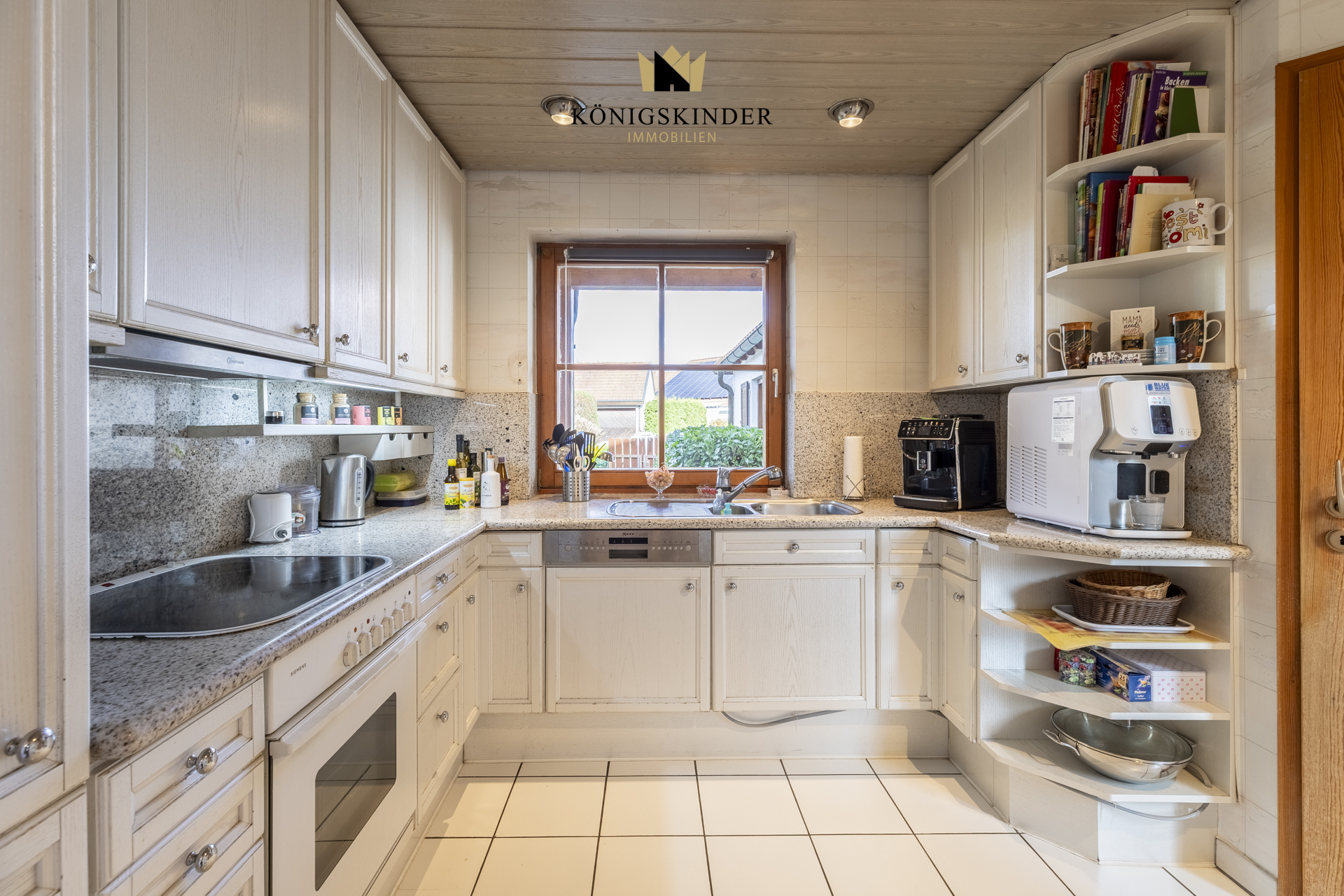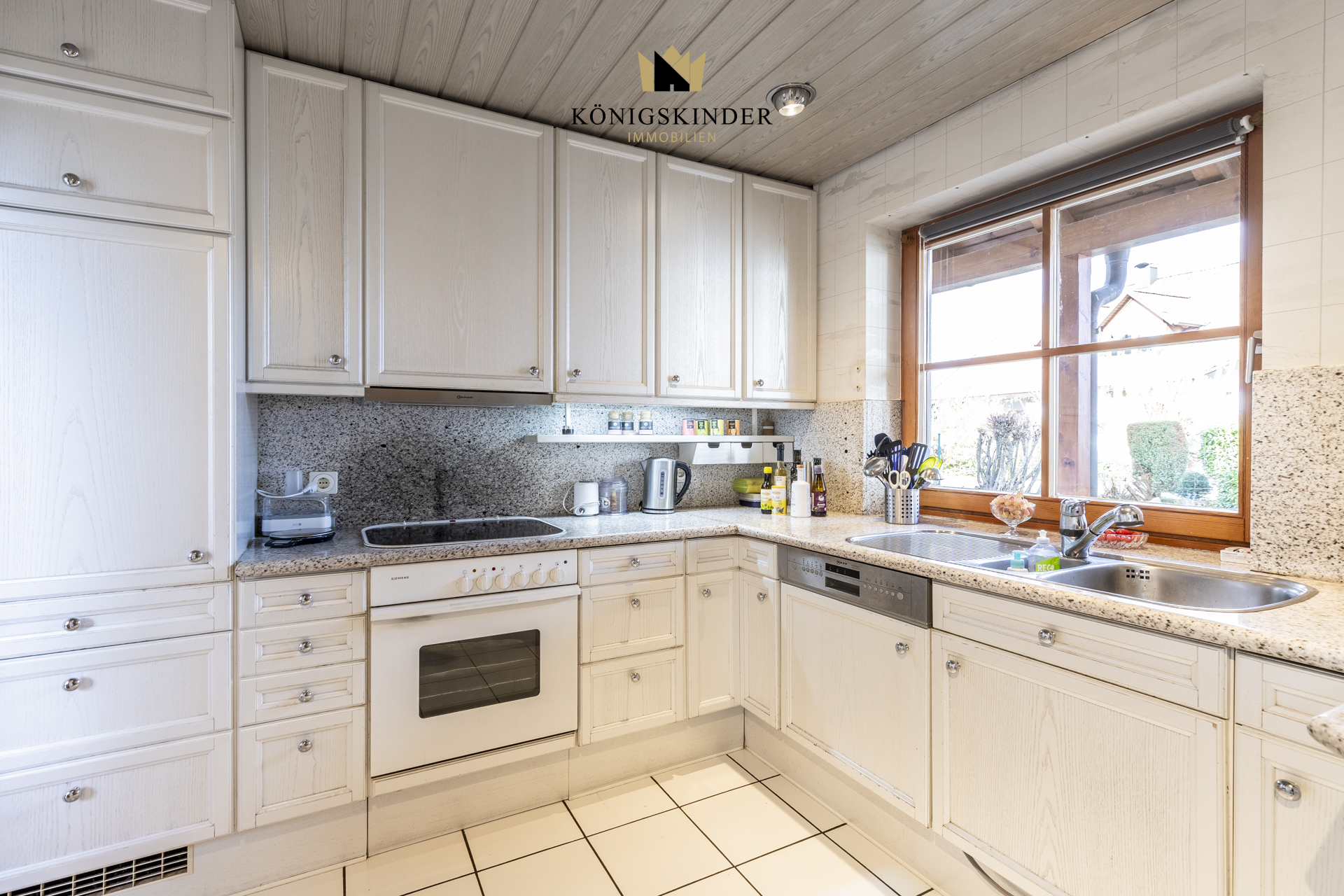 Schon beim Eintreten spürt man die einladende Stimmung dieses Hauses. Das großzügige Wohnzimmer mit seiner offenen Galerie bildet den zentralen Treffpunkt für die ganze Familie. Durch die hohe Decke und die großen Fenster wirkt der Raum hell und freundlich, während der gemütliche Holzofen in der kühleren Jahreszeit für eine besonders behagliche Stimmung sorgt. Ebenfalls bietet die Küche mit ihrem separaten Essbereich und einem kleine Wintergarten einen Ort der Gemütlichkeit und ein Gefühl von Zuhause.
