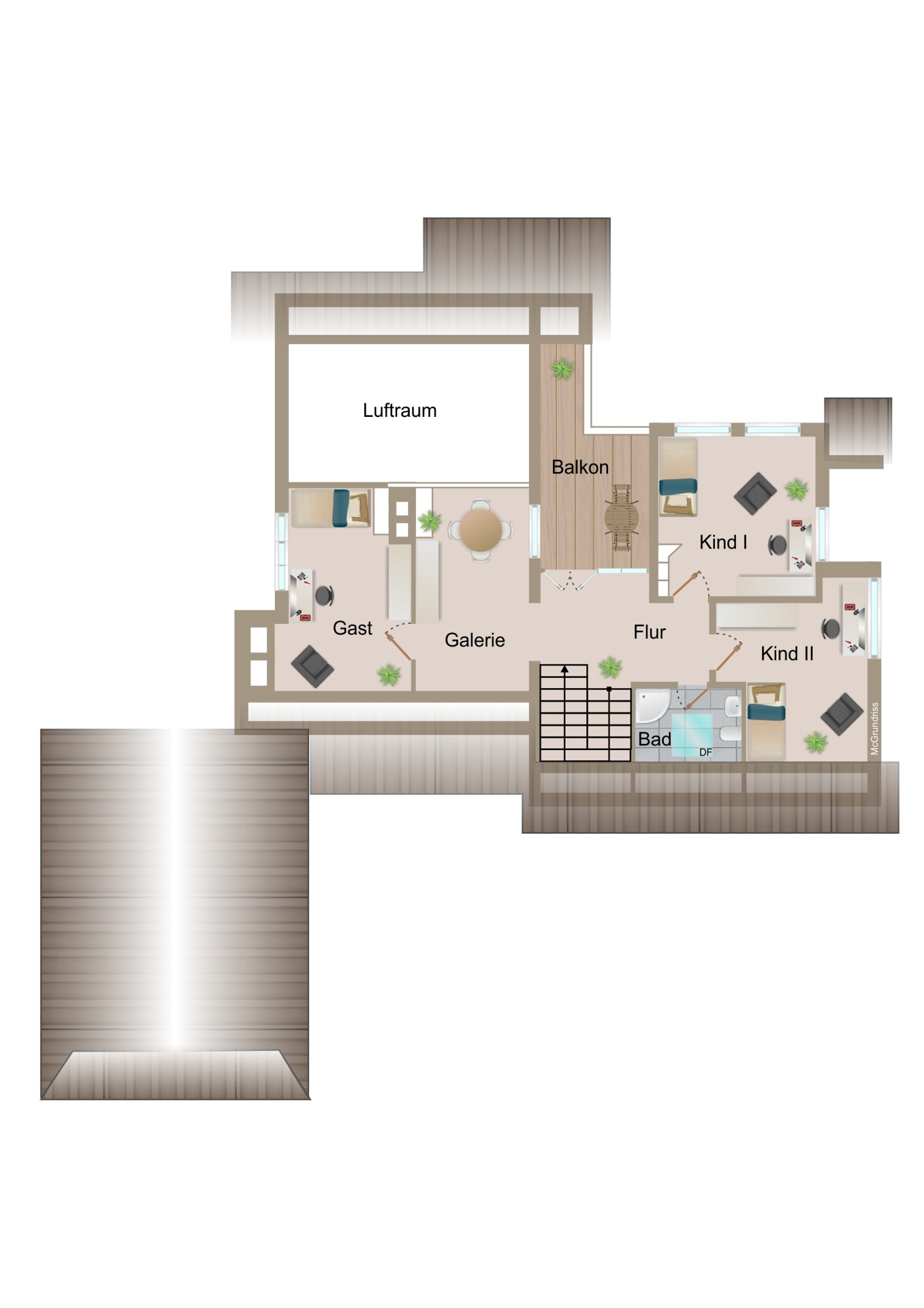 Mit insgesamt sechs Zimmern bietet das Haus zahlreiche Gestaltungsmöglichkeiten. Kinder können sich über eigene Zimmer freuen, Eltern genießen Rückzugsorte, und wer von zuhause arbeitet, findet Platz für ein helles Büro.