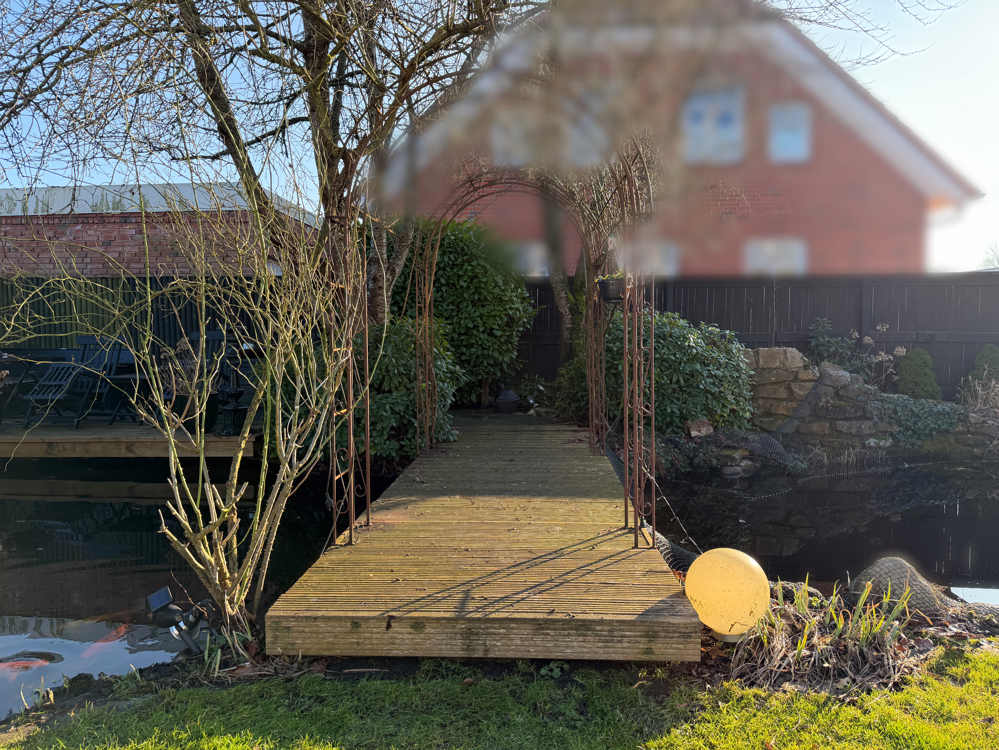 - Idyllischer Gartenteich mit Steg und Brücke