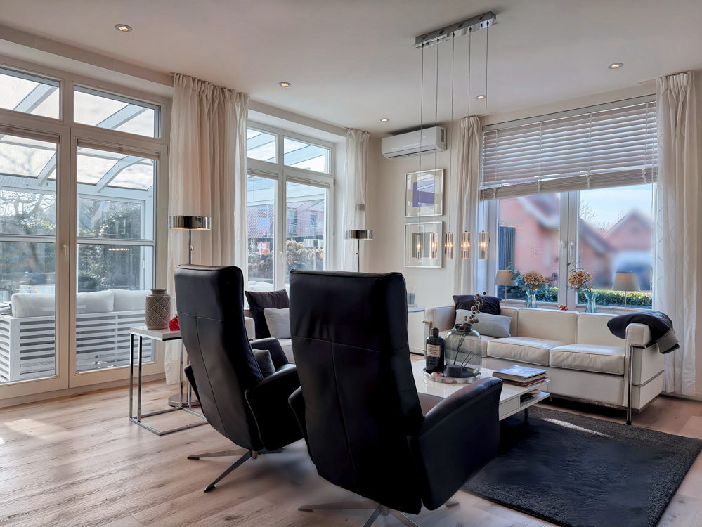 - Klimaanlagen im Wohnzimmer und in drei Schlafzimmern im Obergeschoss