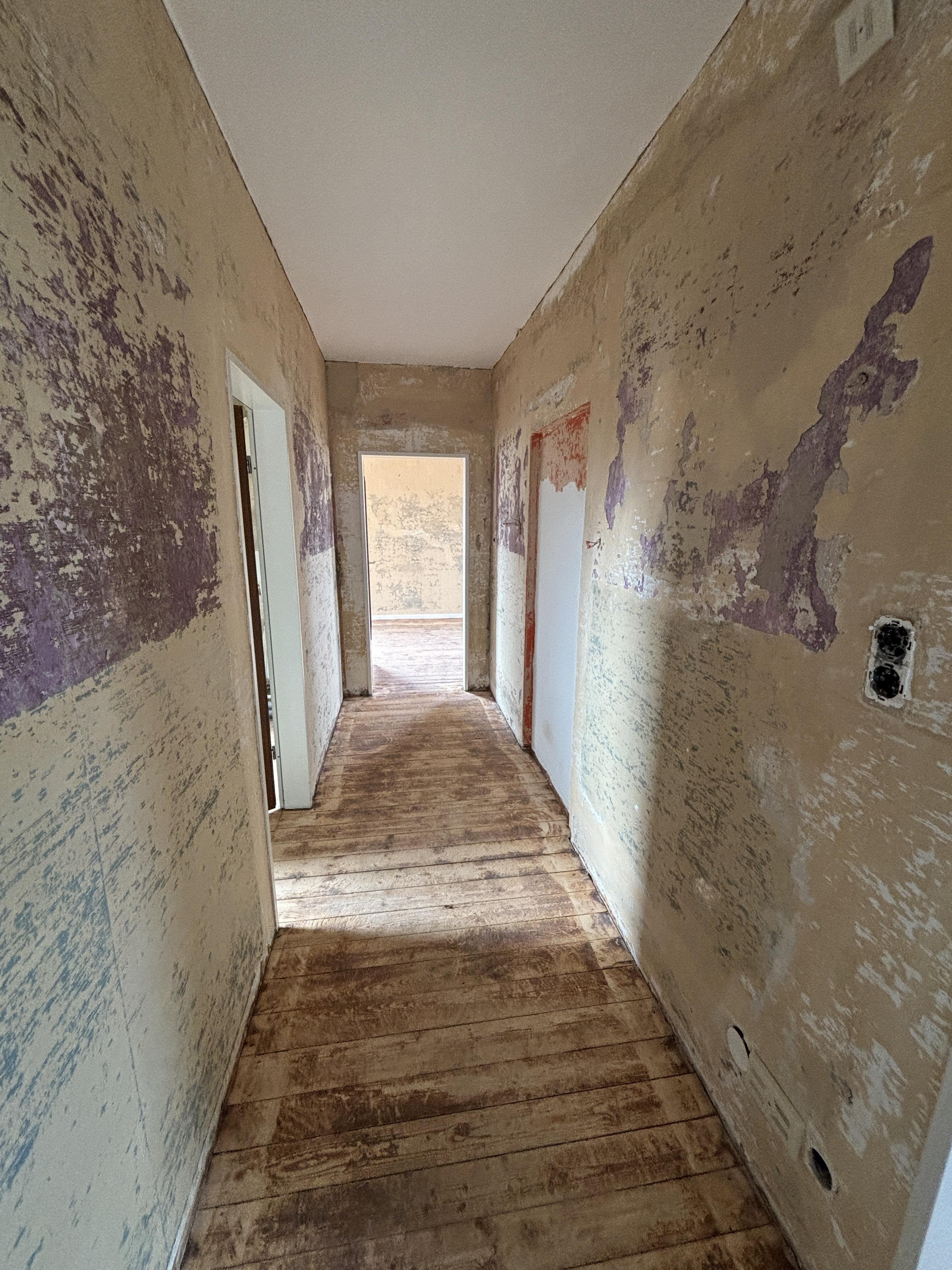 In diesem gepflegten 3-Familienhaus wartet die mittlere Etage mit ca. 92 m² (Wintergarten und Dachterrasse sind in der Wohnfläche mit berücksichtigt) auf Neubelebung! In zentrumsnaher und ruhiger Wohnlage kann demnächst Ihr „neues“ Zuhause liegen. Stilvoll präsentiert sich das historische Haus bereits von außen. Mit Ihren Ideen und deren Umsetzung kann auch diese helle Wohnung von innen wieder ein echtes „Schmuckstück“ werden. Toll, dass für die Neugestaltung schon so viel Vorarbeit geleistet wurde. Tapeten wurden bereits entfernt und auch die Dielenböden sind für die nächsten Schleifarbeiten vorbereitet worden. Die Wohnung bietet vielfältige Möglichkeiten zur Verwirklichung eines individuellen Wohnkonzepts. Die Elektro-, Sanitär- und Heizungsinstallationen entsprechen teilweise nicht mehr dem heutigen Standard und können im Rahmen einer Renovierung erneuert werden, um zeitgemäßen Wohnkomfort und eine moderne Ausstattung zu schaffen. Die bereits erfolgte Einblasdämmung wird mit den von Ihnen neu eingesetzten Fenster die Heizkosten minimieren. Ein drittes Zimmer kann mit einer neu gesetzten Trockenbauwand mit wenig Aufwand entstehen. Freuen Sie sich schon während der Umbauphase und vor allem danach auf den Wintergarten und die Dachterrasse. Ein Kellerraum und ein Carportstellplatz gehören ebenfalls zu diesem Angebot.