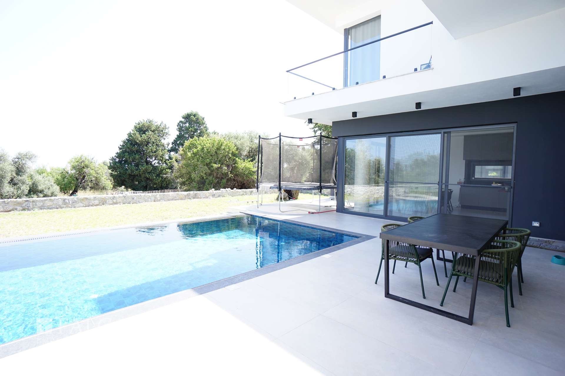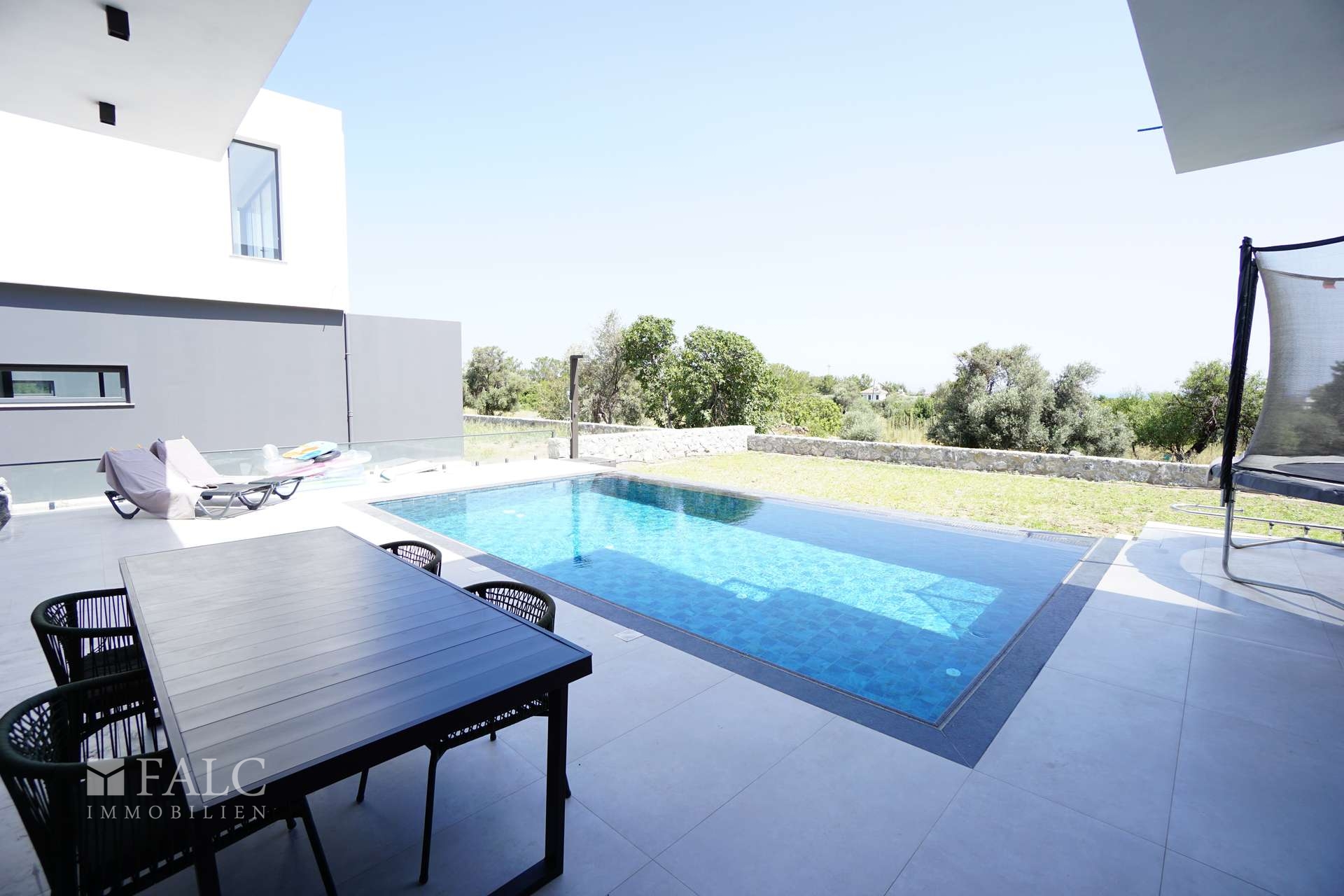 Die moderne Einbauküche ist mit allen notwendigen Geräten ausgestattet und lädt zum gemeinsamen Kochen und genießen ein. Der traumhafte Garten mit seinem eigenen Pool bietet viel Platz zum Entspannen und Sonnenbaden. An heißen Tagen sorgt die Klimaanlage für angenehme Temperaturen.
