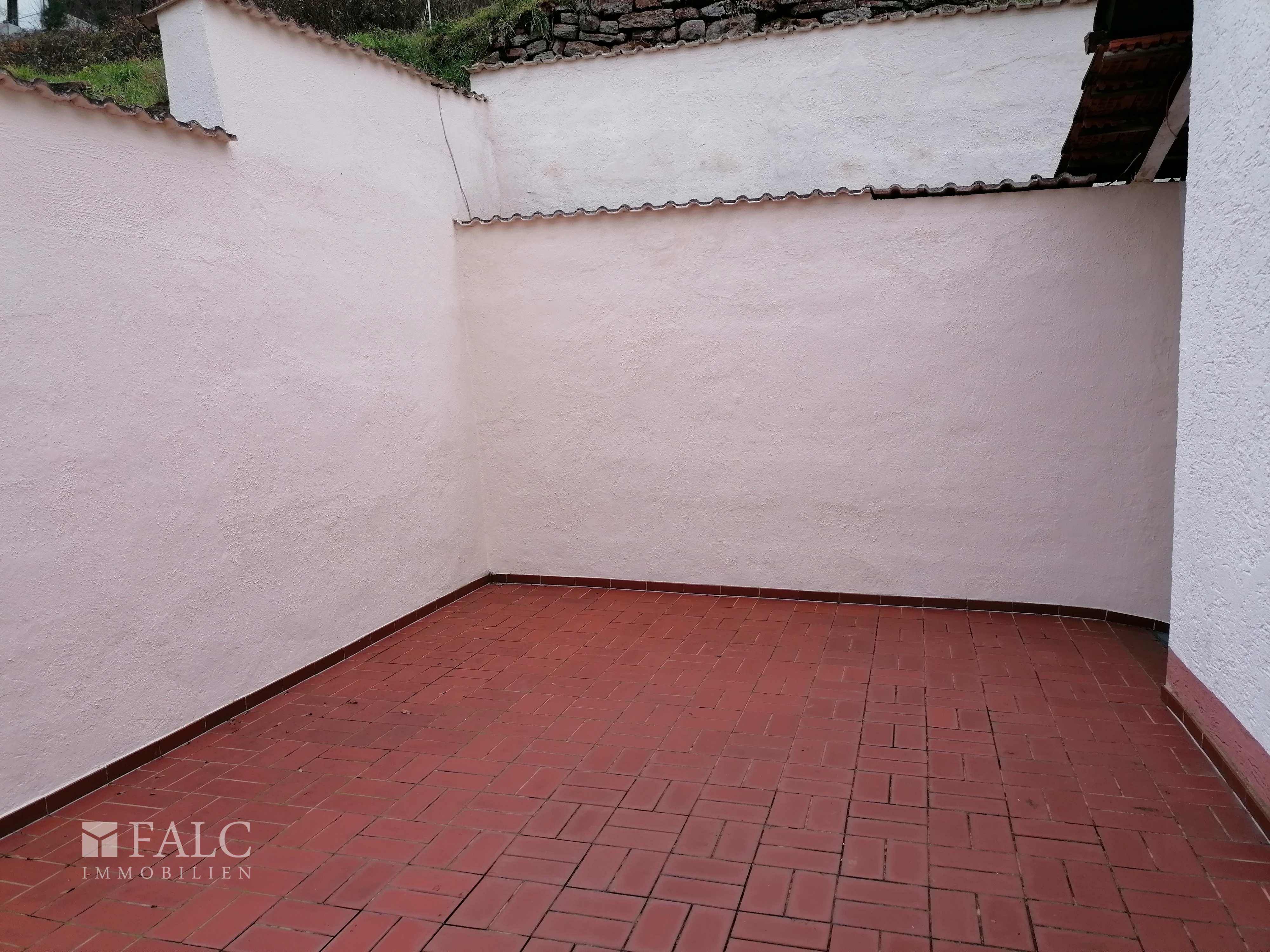 Die Terrasse und Balkon wurde mit Fließen verlegt. ---Das Wohnhaus hat ,,keinen Garten,, Grundstück kann jedoch am Haus zum Gartenstück erweitert werden. Dies erschließt sich durch die Hanglage---