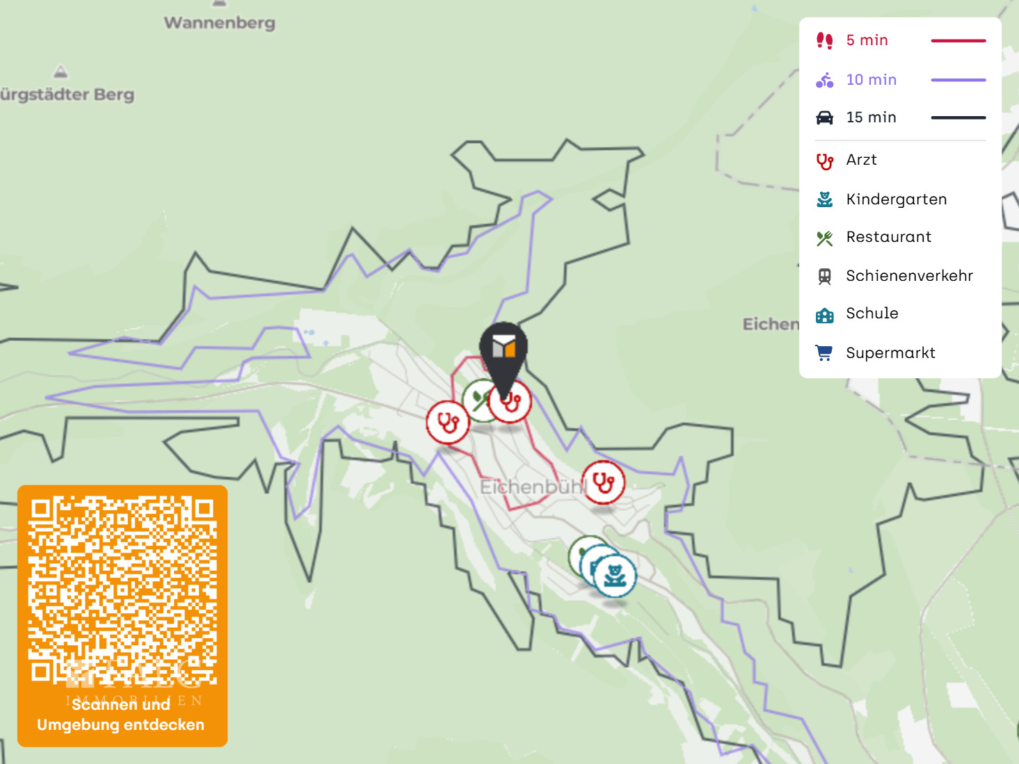 Verschiedene Einrichtungen wie Supermarkt, Apotheke, Kindergarten, Arzt, verschiedene Freizeitangebote , Sporteinrichtungen sowie Gastronomie auf kurzen Wegen erreichbar.