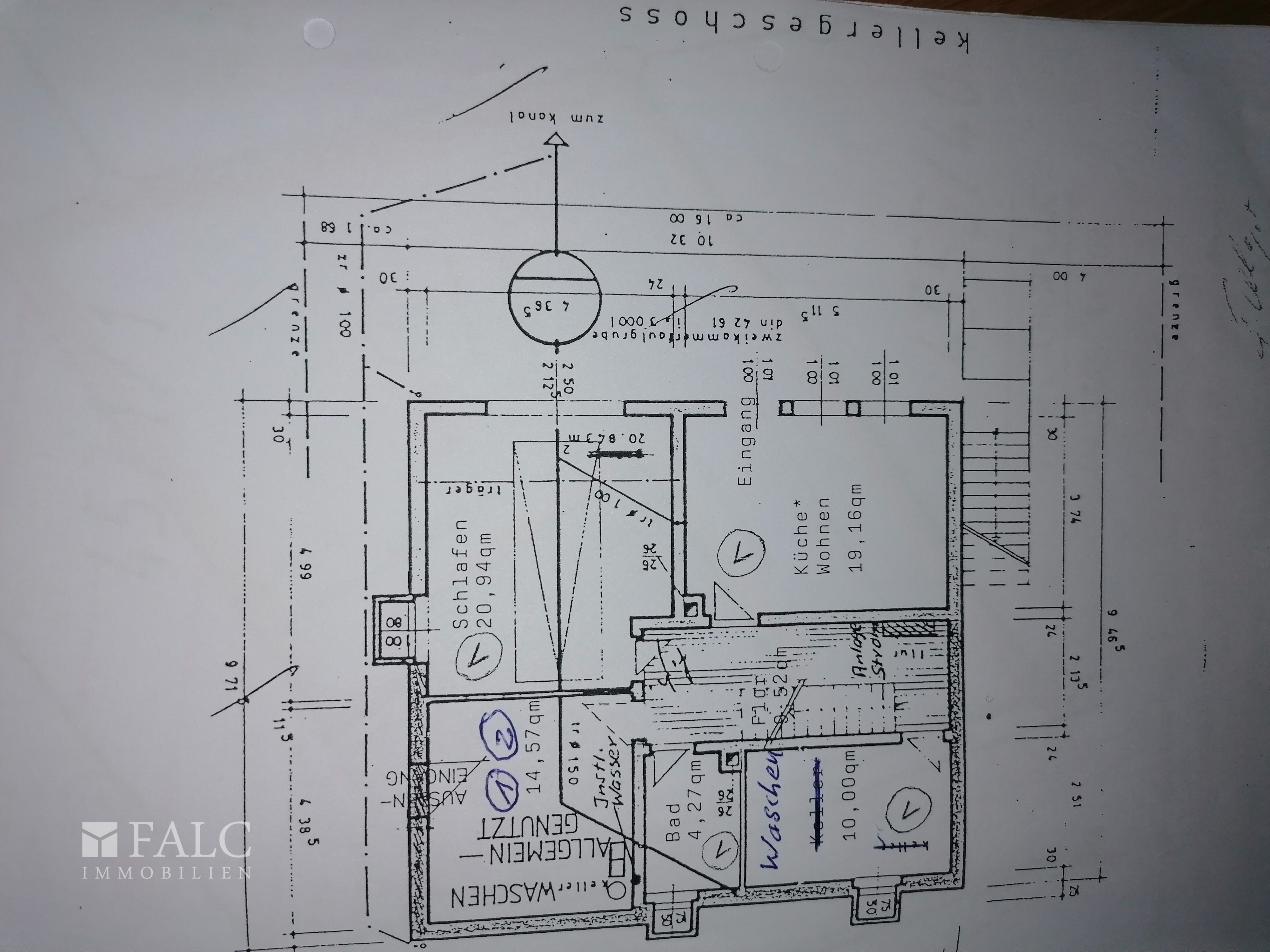 Küche/Wohnen ca. 19,16 m² Schlafzimmer ca. 20,94 m² Waschraum ca. 10,00 m² Badezimmer ca. 4,27 m² Kellerraum ca. 14,57 m² Flur ca. 9,52 m²