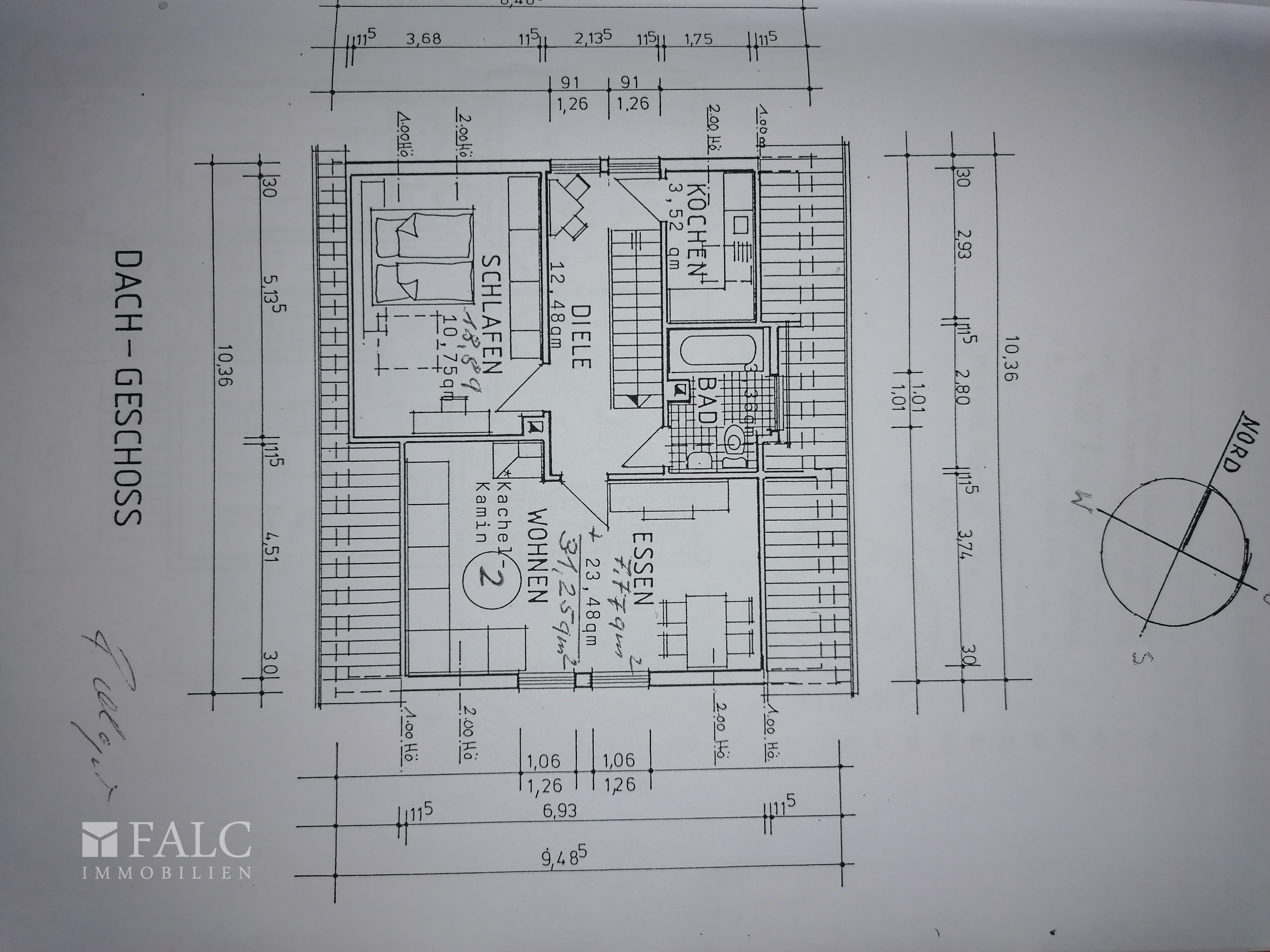 Wohn/Esszimmer ca. 31.25 m² Schlafzimmer ca. 18,89 m² Küche ca. 5,12 m² Diele ca. 12,48 m² Badezimmer ca. 4,90 m²