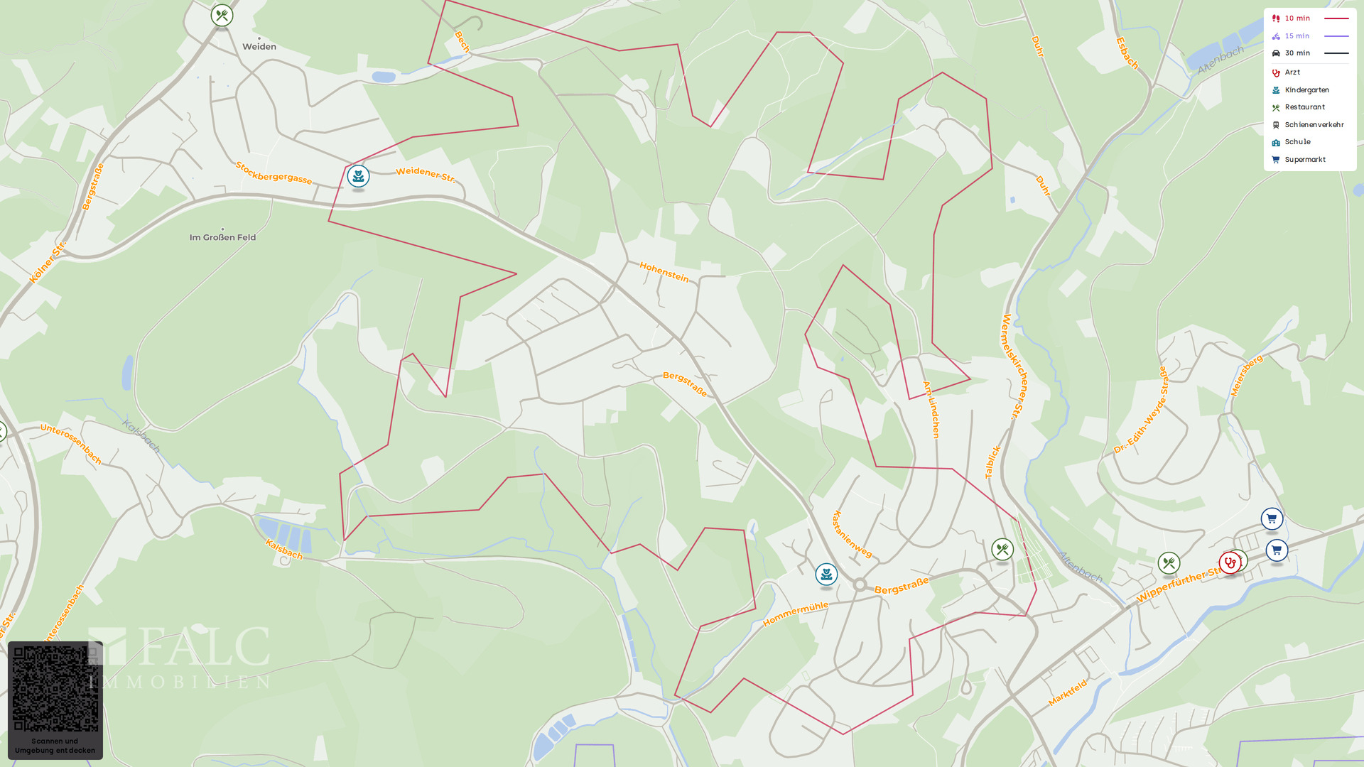 Im näheren Umfeld von Kürten stehen Einkaufsmöglichkeiten für den täglichen Bedarf, Kindergärten sowie Schulen zur Verfügung. Zudem bietet die Region zahlreiche Freizeit- und Erholungsmöglichkeiten: Weitläufige Felder, Wälder und Wanderwege laden zu Aktivitäten in der Natur ein und machen die Lage besonders attraktiv für Familien, Naturliebhaber und Ruhesuchende.