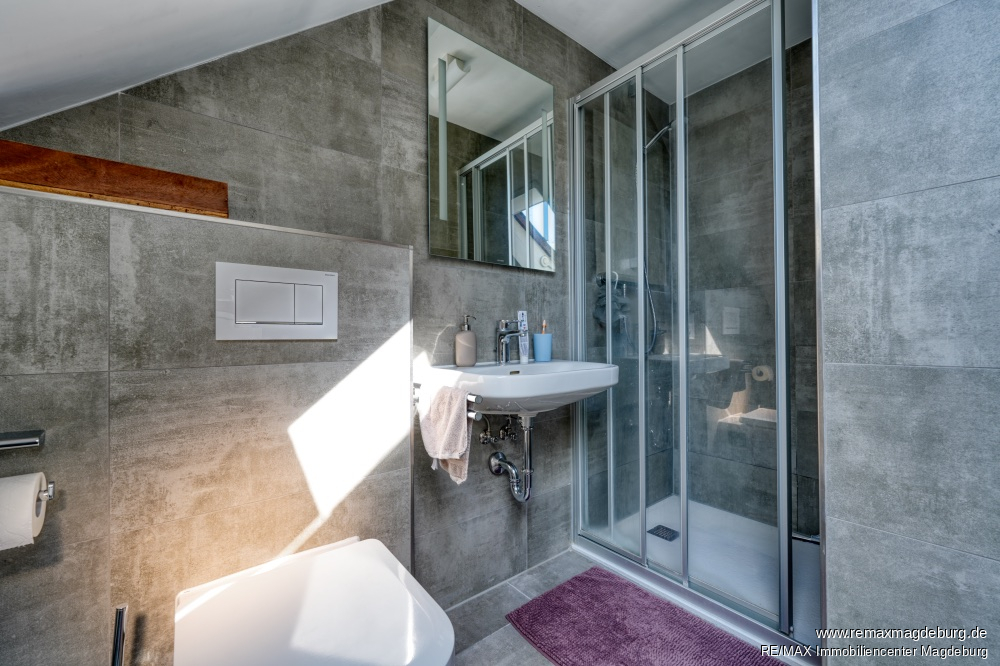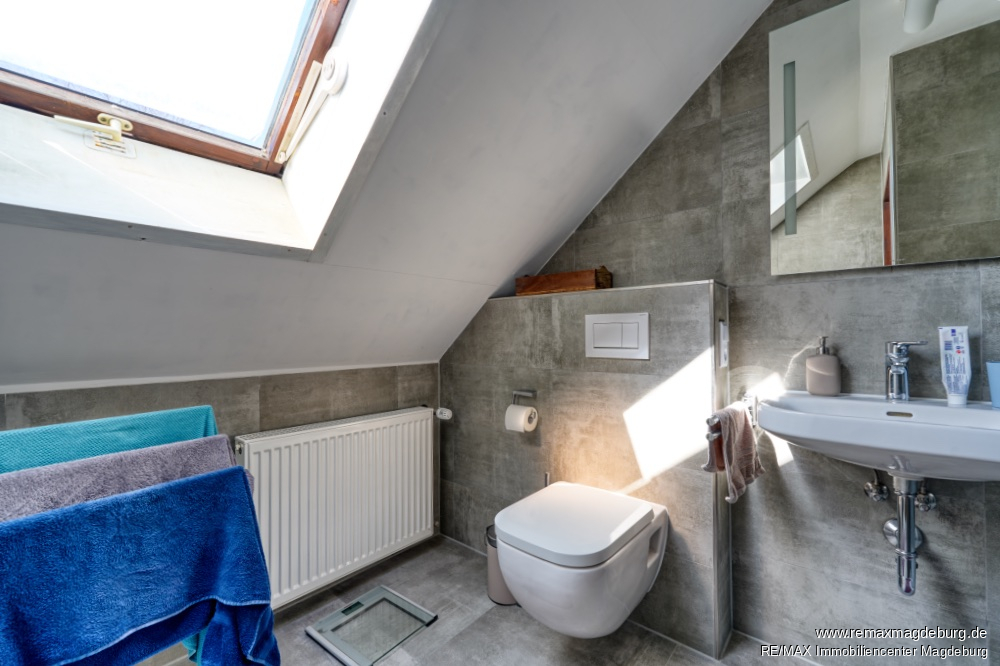 Ein Badezimmer im Dachgeschoss wurde im Jahr 2022 saniert.