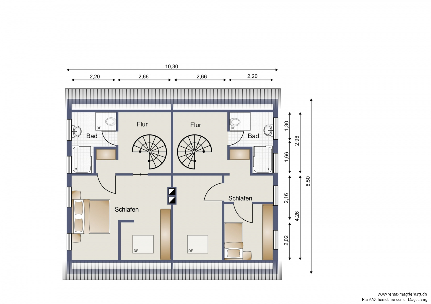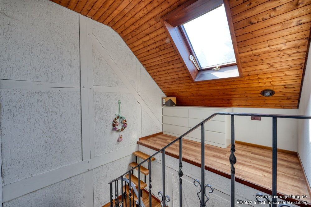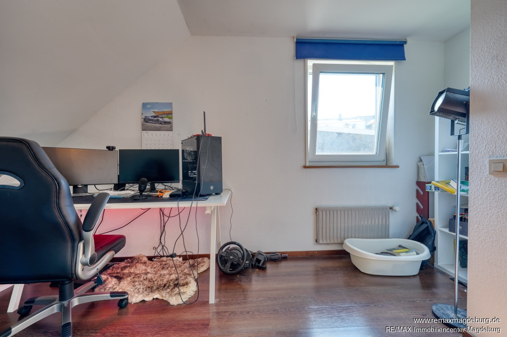 Im Dachgeschoss sind folgende Räume vorhanden: 1 modernes Duschbad mit Fenster, Elternschlafzimmer, Büro, Kinderzimmer, 2. Duschbad.