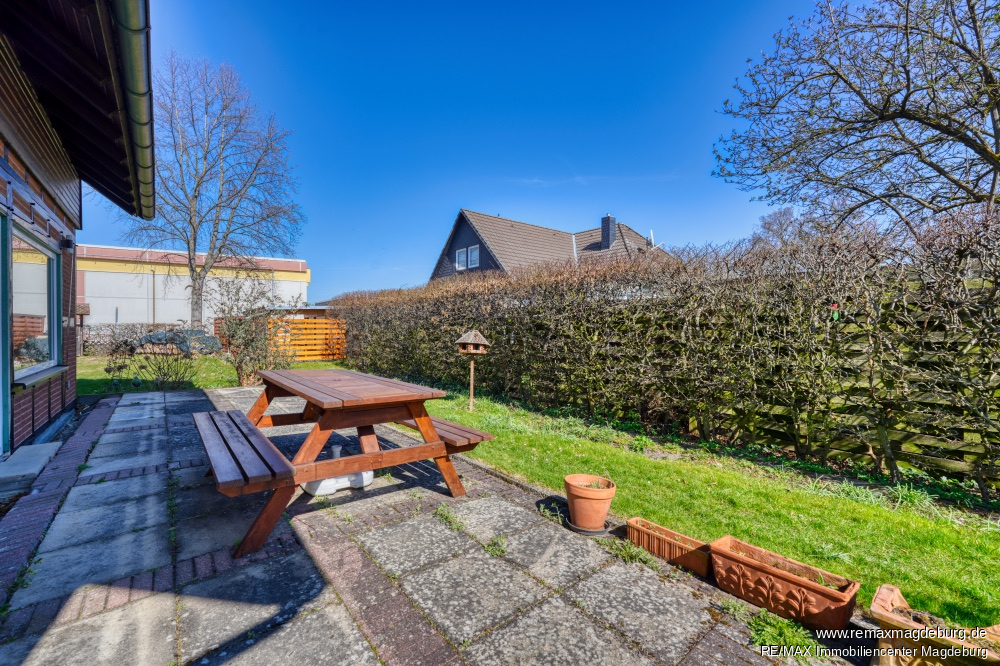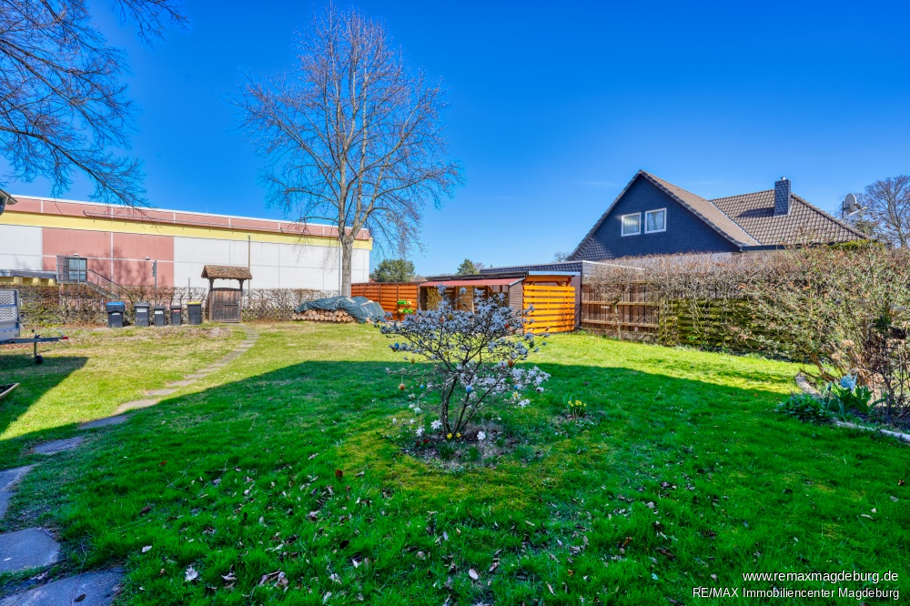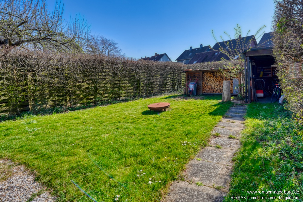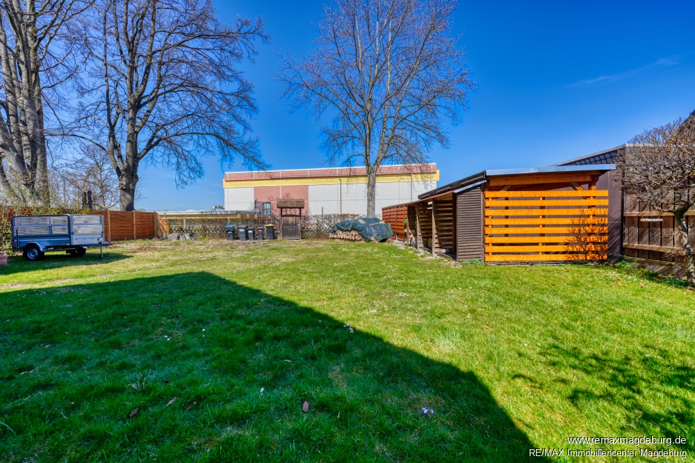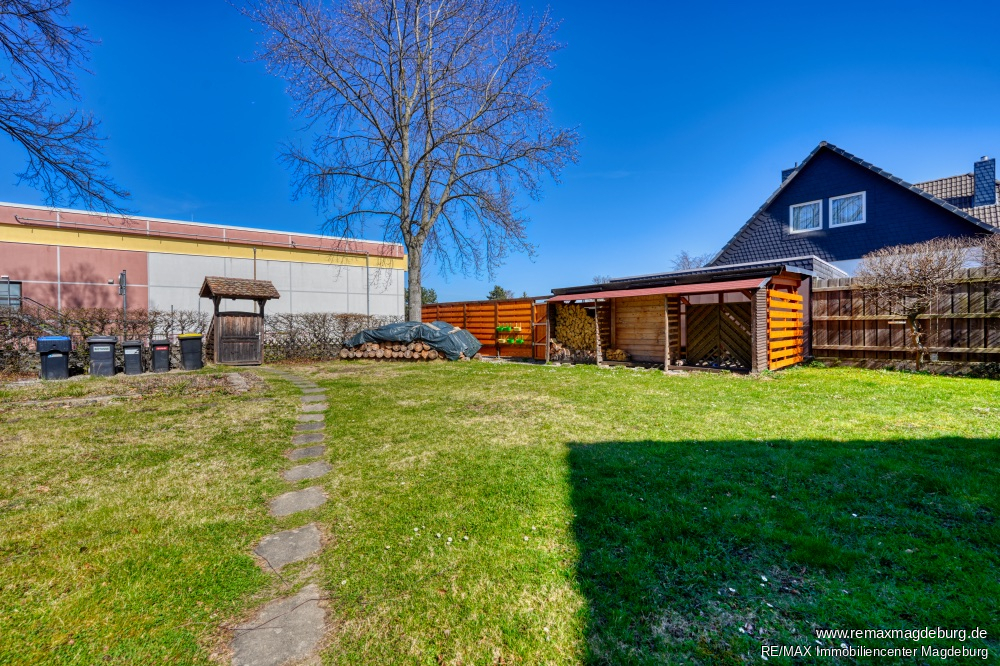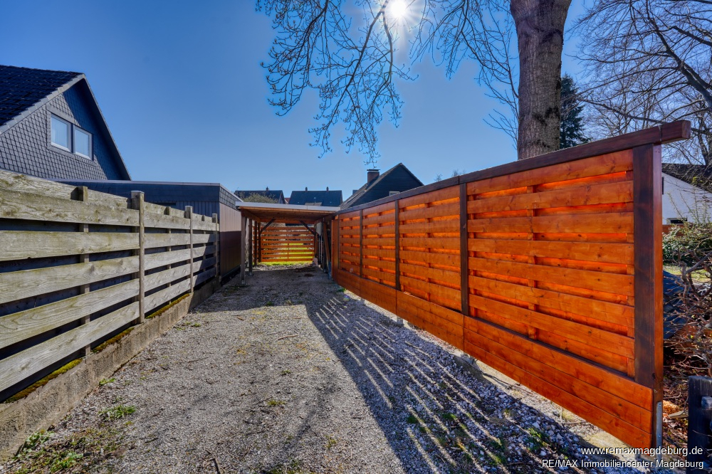 Das 823 m² große Grundstück bietet Ihnen sehr viel Platz. Hier sind bereits ein Carport, ein Fahrradschuppen und ein Holzlager vorhanden.