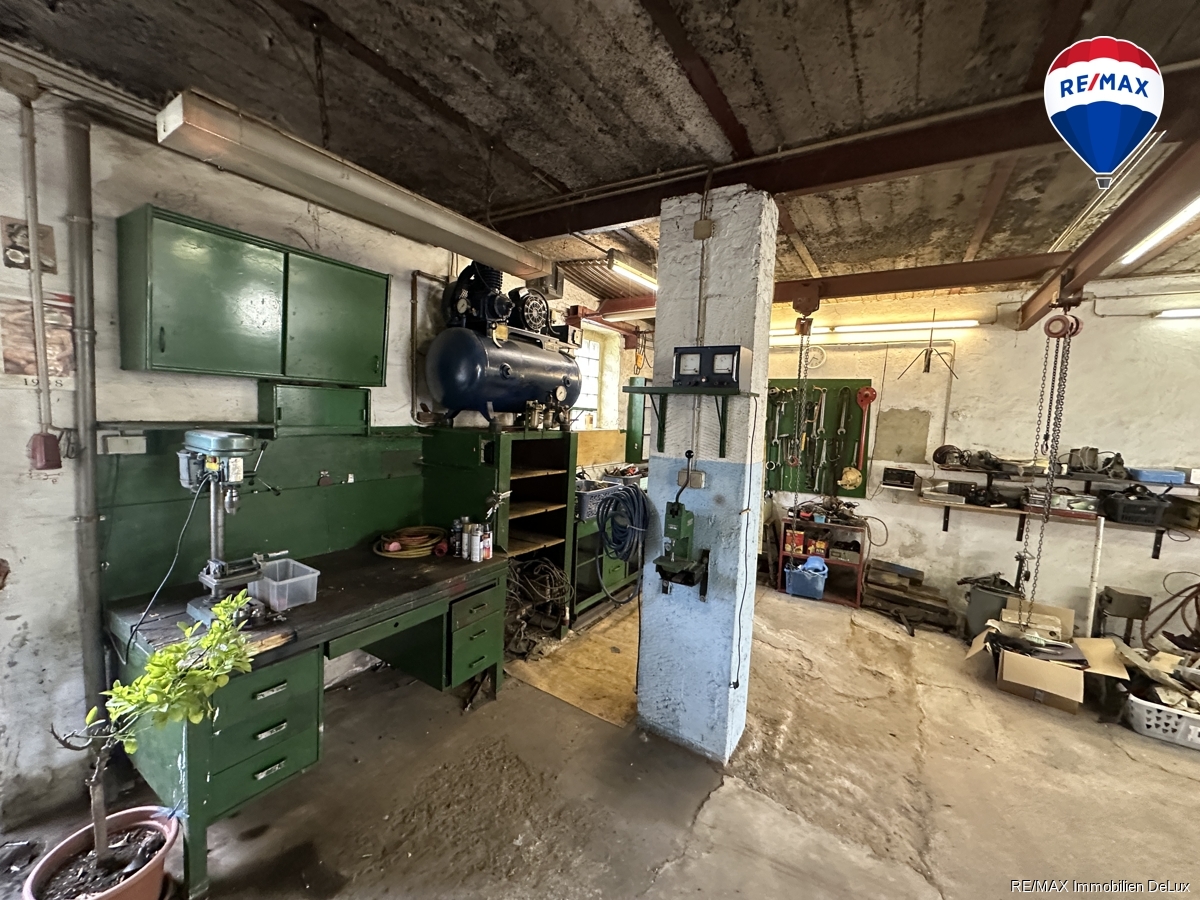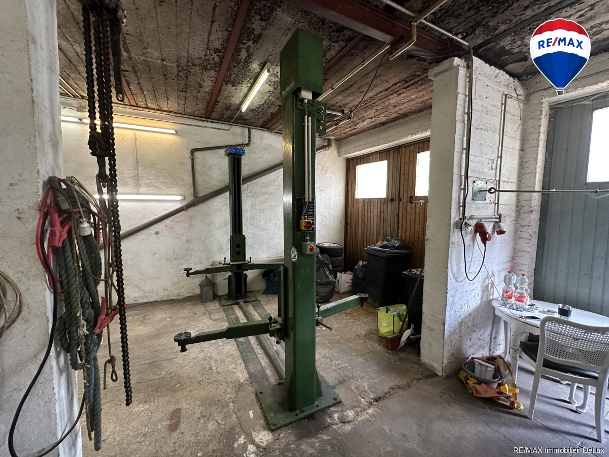 Bereits im Erdgeschoss zeigt sich die funktionale Aufteilung der Immobilie. Der Eingangsbereich bietet ausreichend Platz für eine Garderobe und führt in die zentrale Diele, von der aus die weiteren Räume erreichbar sind. Zusätzlich befindet sich im Erdgeschoss ein separates WC sowie eine praktische Abstellnische, die sich ideal zur Unterbringung von Haushaltsgegenständen eignet. Ein besonderes Highlight dieser Immobilie ist die außergewöhnlich große Garage, die vom ehemaligen Eigentümer als vollwertige Werkstatt genutzt wurde. Hier wurden mit Leidenschaft Fahrzeuge instand gehalten und repariert – ein Paradies für alle Auto- und Technikliebhaber. Die großzügige Fläche bietet vielseitige Nutzungsmöglichkeiten, sei es als Hobbywerkstatt, Schrauberparadies oder für individuelle Projekte. Dieser Bereich verleiht dem Haus einen ganz besonderen Charakter und bildet einen echten Mittelpunkt der Immobilie.