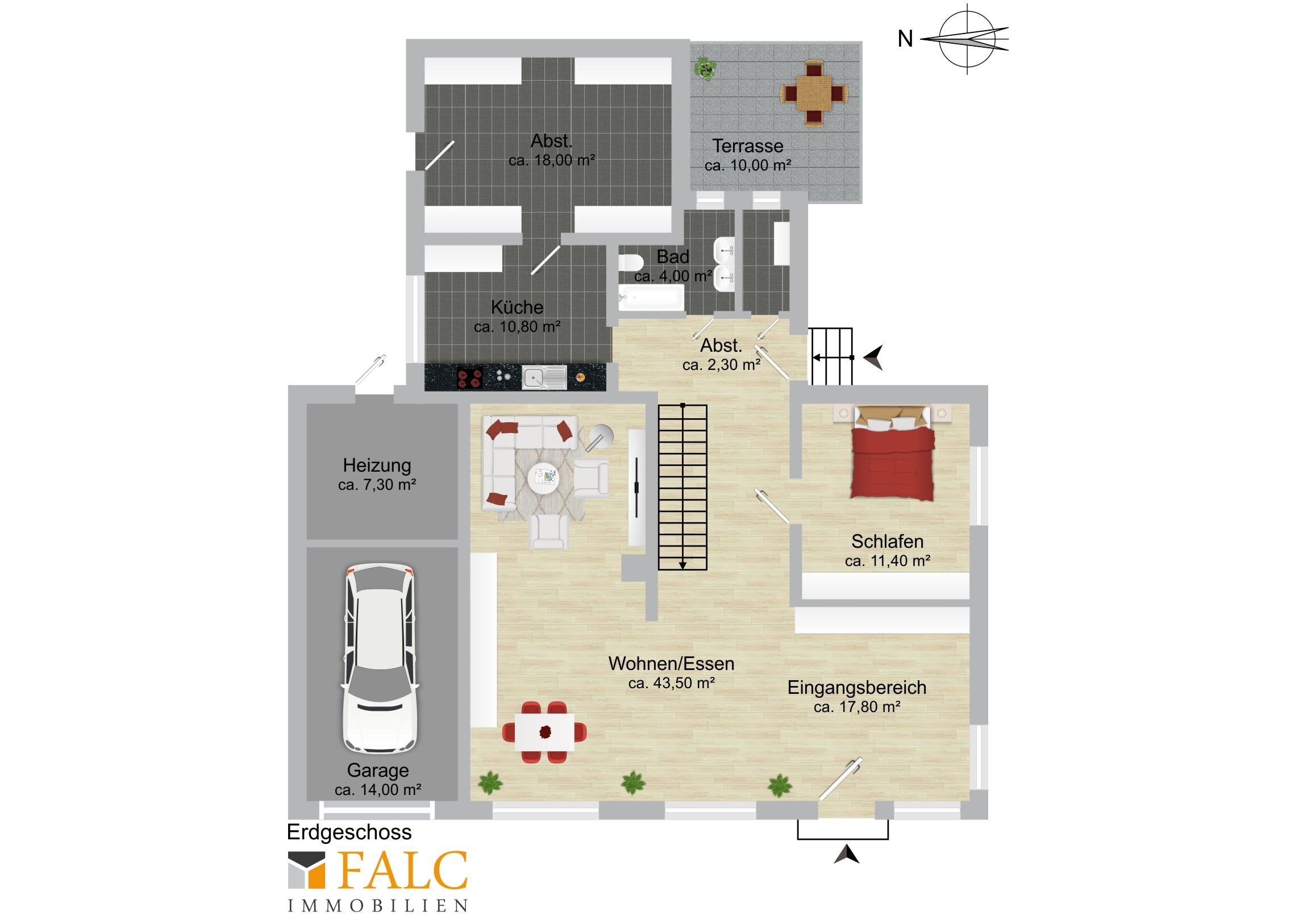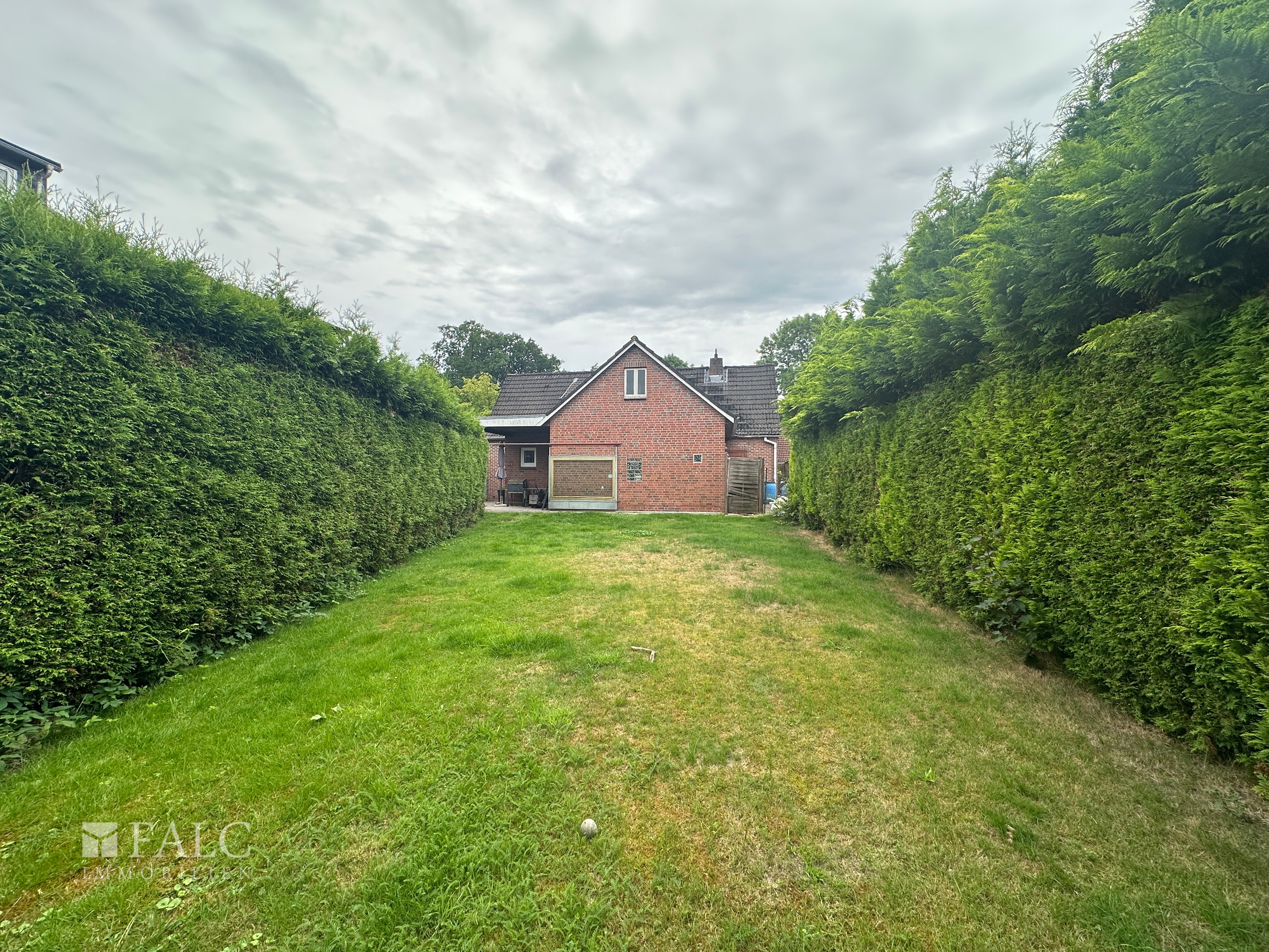 Ihre Kinder werden sich in dem Garten hinter dem Haus wohlfühlen. Die teilüberdachte Terrasse lädt Sie zum Verweilen ein. Von dort gelangen Sie durch den zweiten Eingang direkt ins Haus.