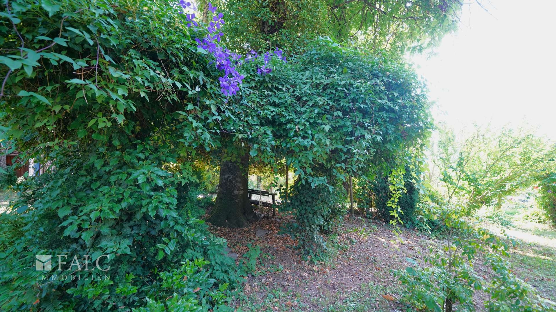 Besonderes Highlight ist der rund 1.100 m² große Garten mit altem Obstbaumbestand. Vom Westbalkon der Erdgeschosswohnung gelangen Sie direkt ins Grüne. Ein Gartenhaus sowie eine separate Werkstatt bieten zusätzlichen Raum für Freizeit, Hobby und Gartenpflege.