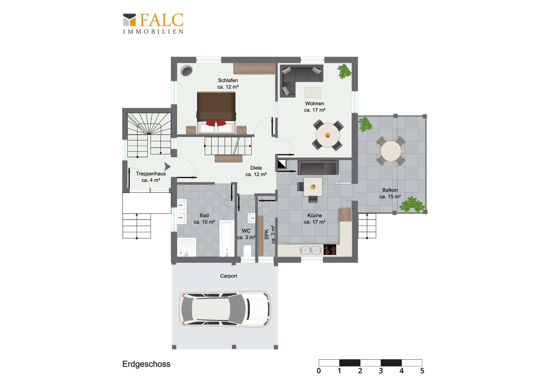 Zur Immobilie gehört ein Carport, der Ihr Fahrzeug witterungsgeschützt unterbringt.