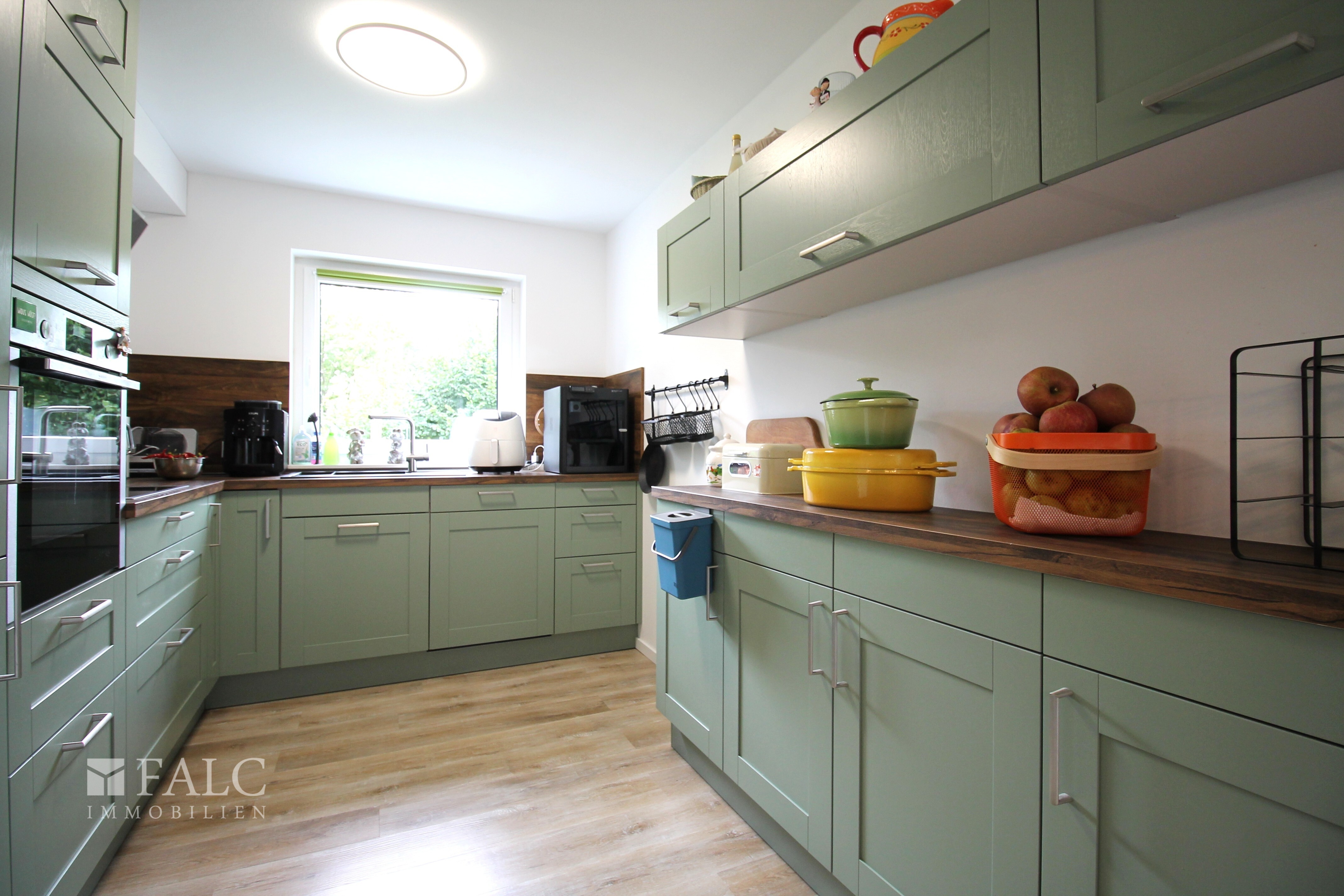 Die Küche ist modern ausgestattet und bietet viel Stauraum sowie alle notwendigen Geräte für den täglichen Bedarf. Ein Gäste-WC im Erdgeschoss sorgt für zusätzlichen Komfort.