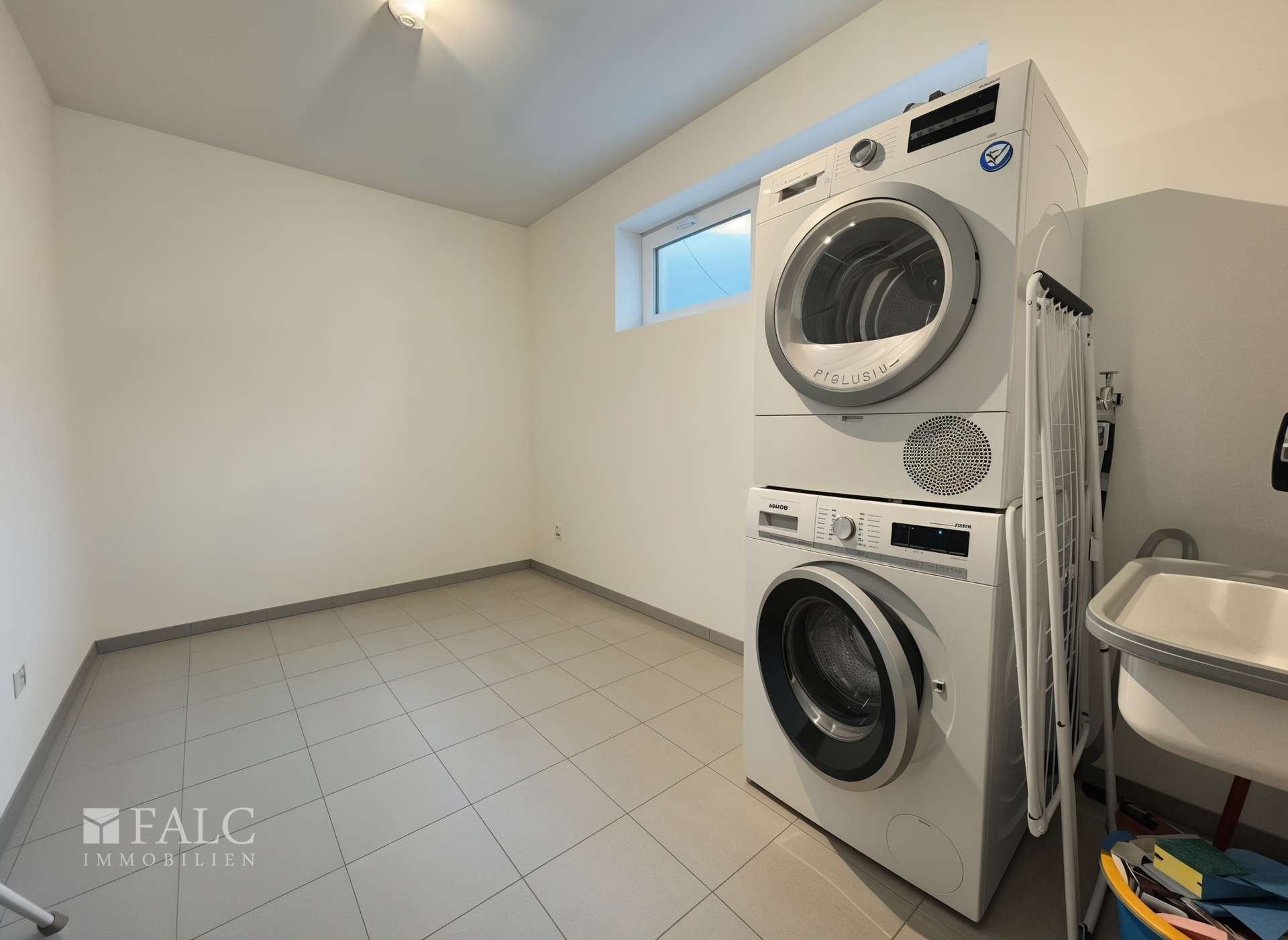 Zusätzlichen Komfort bietet die direkt vom Haus aus erreichbare Garage, die mit einem elektrischen Tor ausgestattet ist. Ein separater Wasch- und Trockenraum schafft zusätzlichen Platz und praktische Möglichkeiten für den Haushalt.