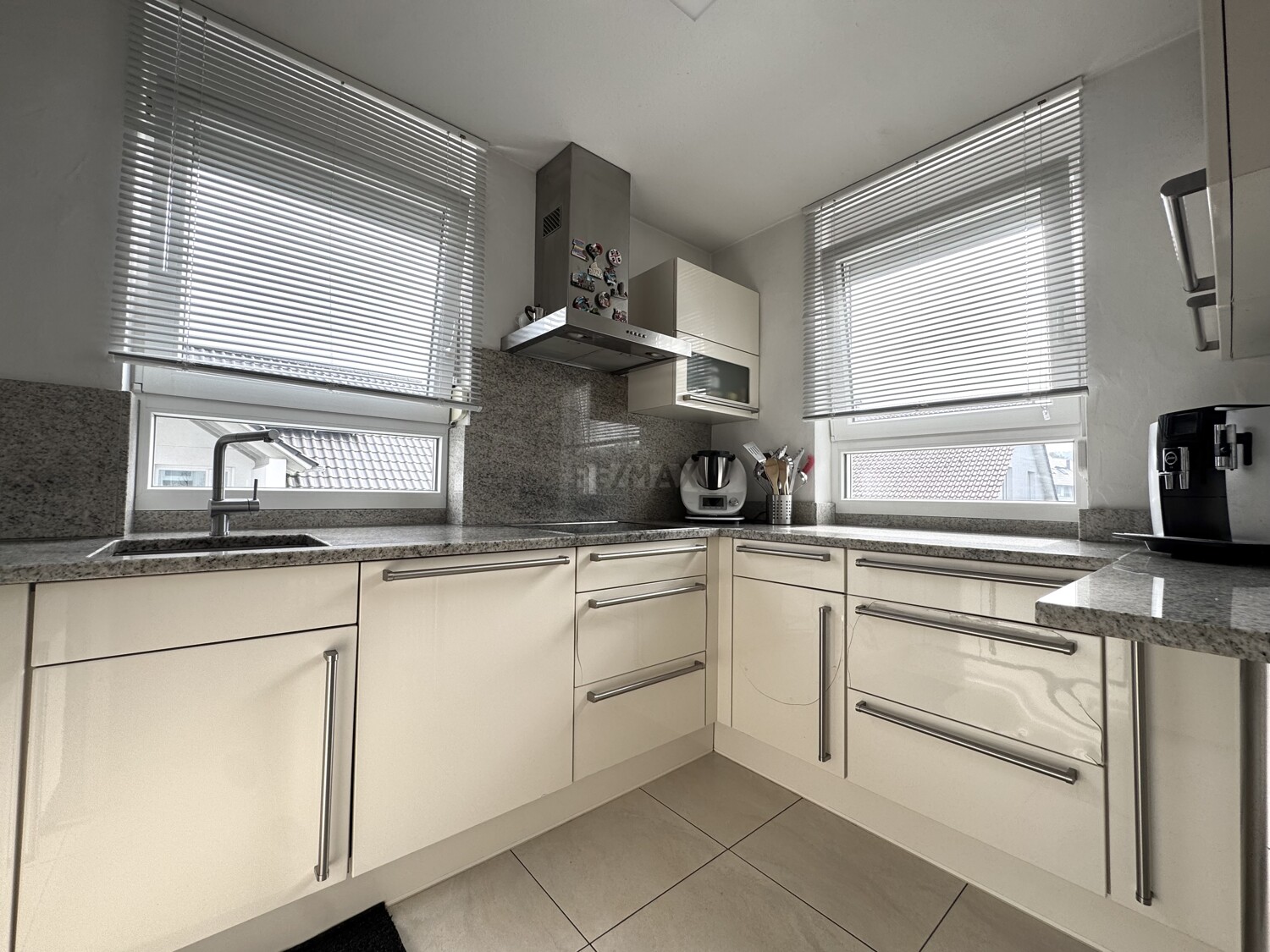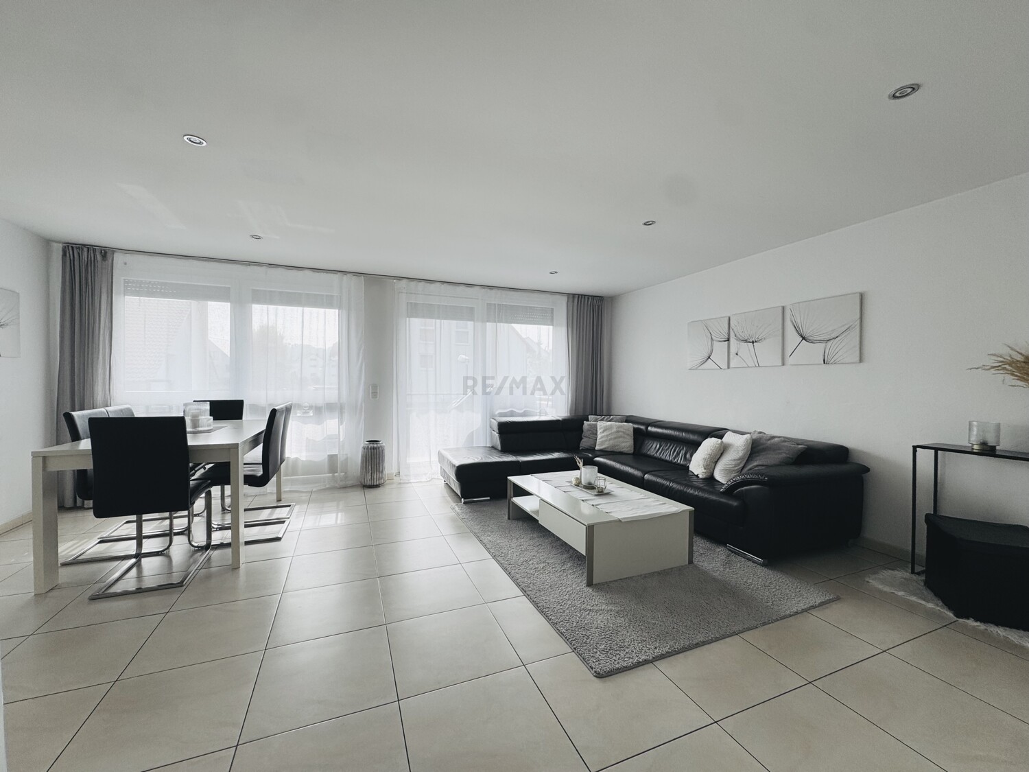 Große Fensterflächen und eine Schiebetür zum Balkon sorgen für ein lichtdurchflutetes Ambiente und die elektrischen Rollläden im Wohnzimmer bieten zusätzlichen Komfort.