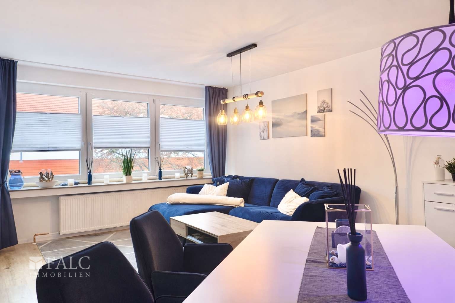 Schon beim Eintreten in diese ansprechende 3-Zimmer-Wohnung im 1. Obergeschoss eines gepflegten Mehrparteienhauses spürt man sofort die angenehme Wohnatmosphäre. Auf rund 80 m² Wohnfläche empfängt Sie ein großzügiger Dielenbereich, der ausreichend Platz für Garderobe und zusätzliche Staumöglichkeiten bietet. Der lichtdurchflutete Wohnbereich mit großen Fensterflächen wirkt offen und freundlich und lädt zum Verweilen ein.