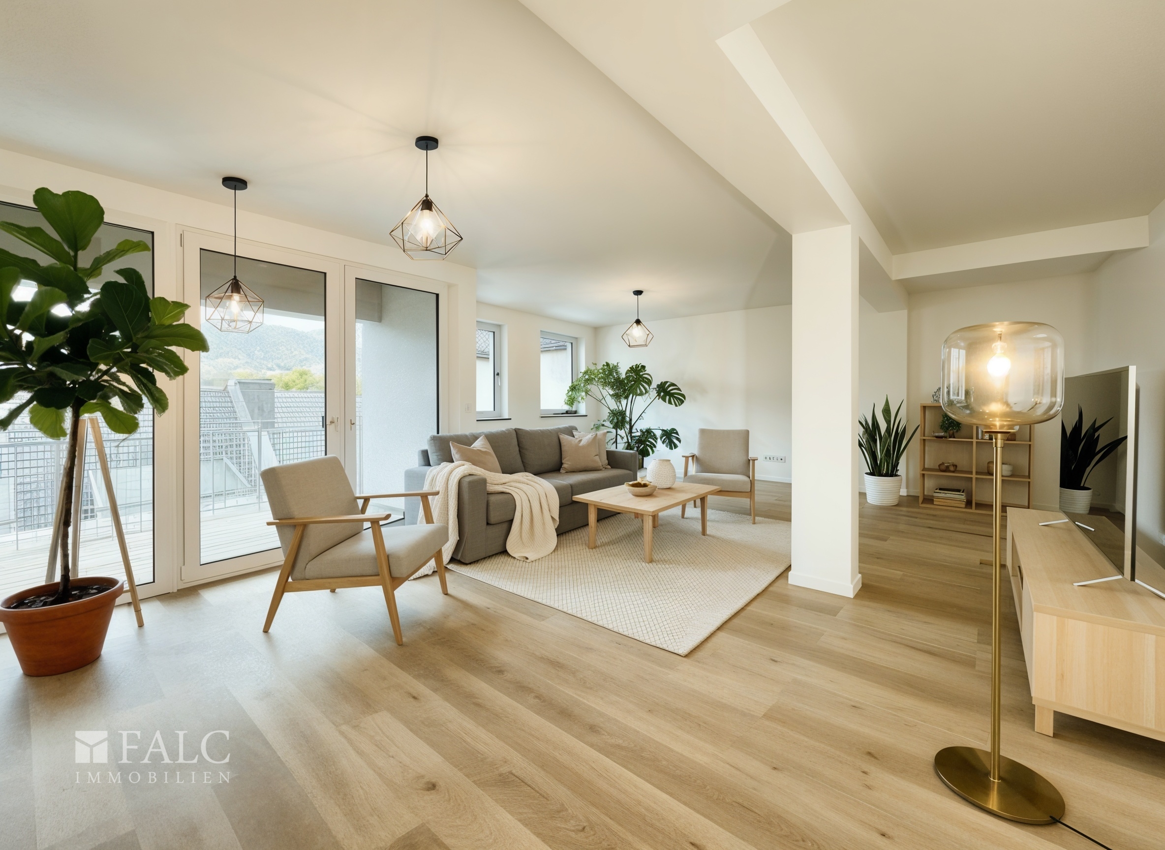 - ca. 133,01 m² Wohnfläche - 2 Zimmer inkl. Wohnküche + Tageslichtbad, Ankleide, Balkon und Terrasse, Gäste-WC - Badezimmer mit hochwertiger Sanitärausstattung, bodengleichen Dusche und Badewanne - Bodentiefe Fenstertüren zum Balkon und zur Terrasse - Fußbodenheizung - Zeitgemäße Bodenbeläge (Vinyl- und Fliesenboden) - Fenster: 3-fach-Verglasung - Heizung: Fernwärme - Warmwassererzeugung durch Durchlauferhitzer - Video-Gegensprechanlage - Loft-Feeling - PKW-Stellplatz - eigener Kellerraum