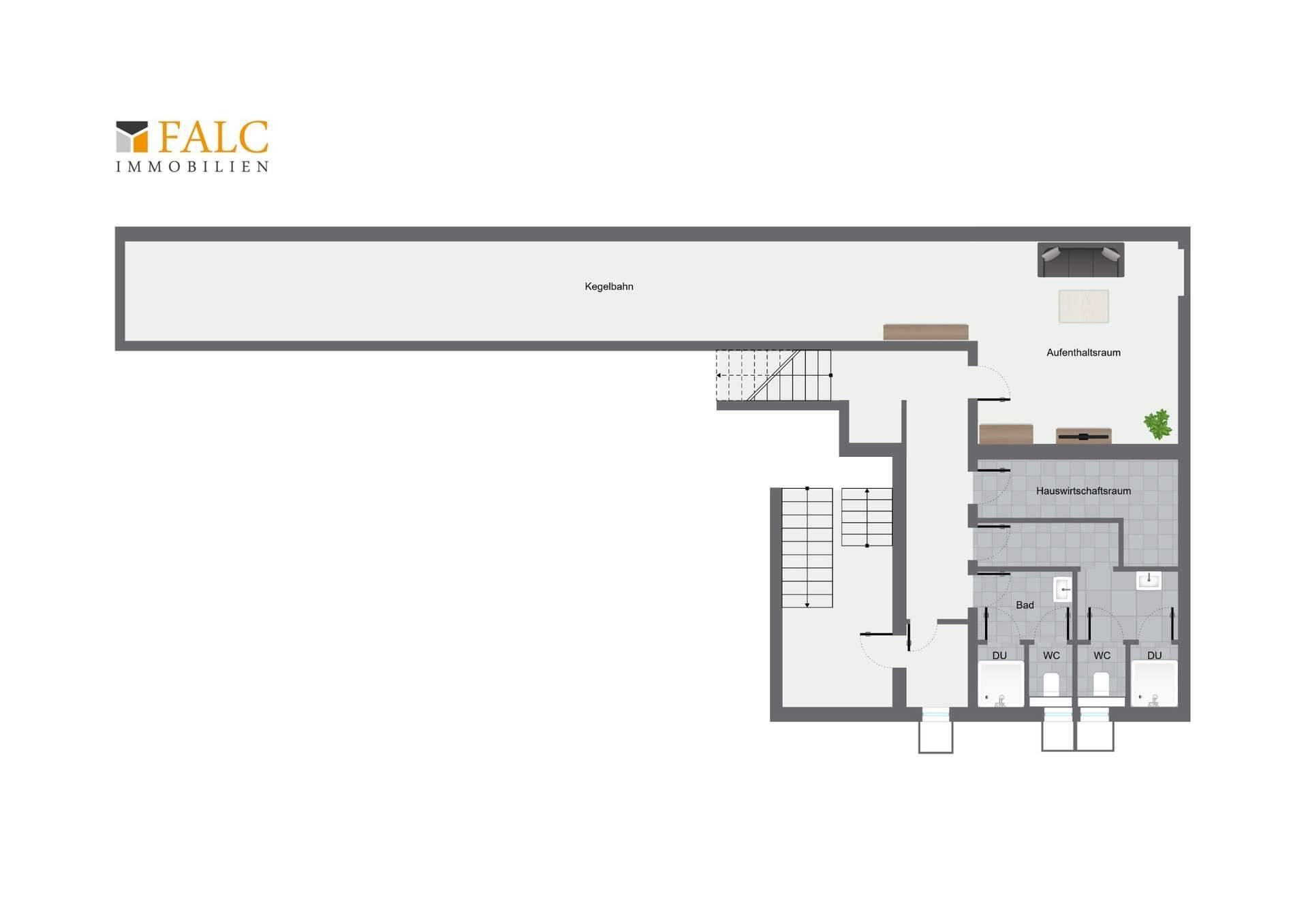 Ein besonderes Highlight sind die zusätzlichen Kellerräume, die ausschließlich über diese Einheit zugänglich sind. Hier erwartet die Gäste ein außergewöhnliches Freizeitangebot mit einer voll funktionsfähigen Kegelbahn und einem gemütlichen Aufenthaltsraum zum Entspannen. Auch zwei moderne Duschbäder sowie ein Hauswirtschaftsraum befinden sich im Untergeschoss.
