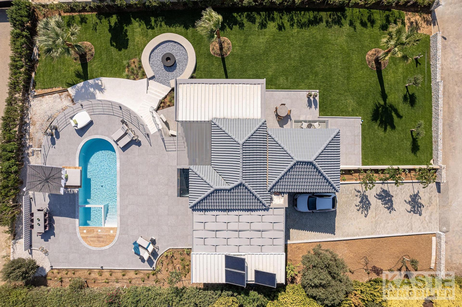 Die Immobilie verfügt ebenfalls über einen eigenen Parkplatz sowie hochwertige Zusatzfeatures wie Highspeed-Internet, elektrische Fensterläden, Alarmanlage mit Kameras und Sonnenkollektoren, die den nachhaltigen Charakter der Villa unterstreichen.