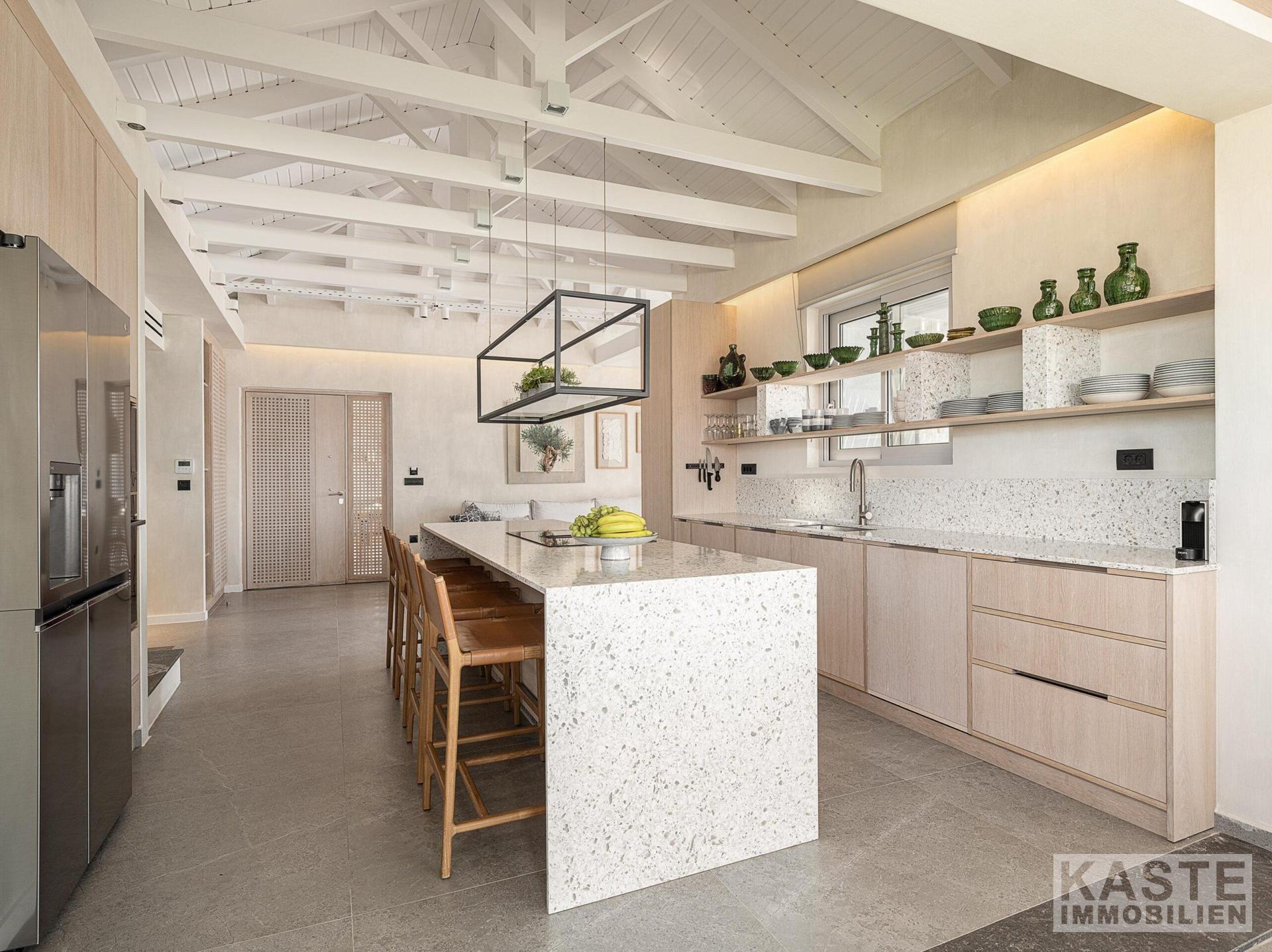 Der lichtdurchflutete Wohnbereich überzeugt mit einem dekorativen Eisenofen, der behagliche Abende garantiert, sowie mit einer modernen, offen gestalteten Küche, die mit hochwertigen Geräten ausgestattet ist. Ergänzt wird die Ausstattung durch eine Klimaanlage und Smart-Home-Technologie, die höchsten Wohnkomfort und zeitgemäße Funktionalität unter einem Dach vereinen. Für Freizeit und Unterhaltung bietet ein separates Spielzimmer multifunktionale Nutzungsmöglichkeiten – ideal für Familien oder gesellige Abende mit Gästen.