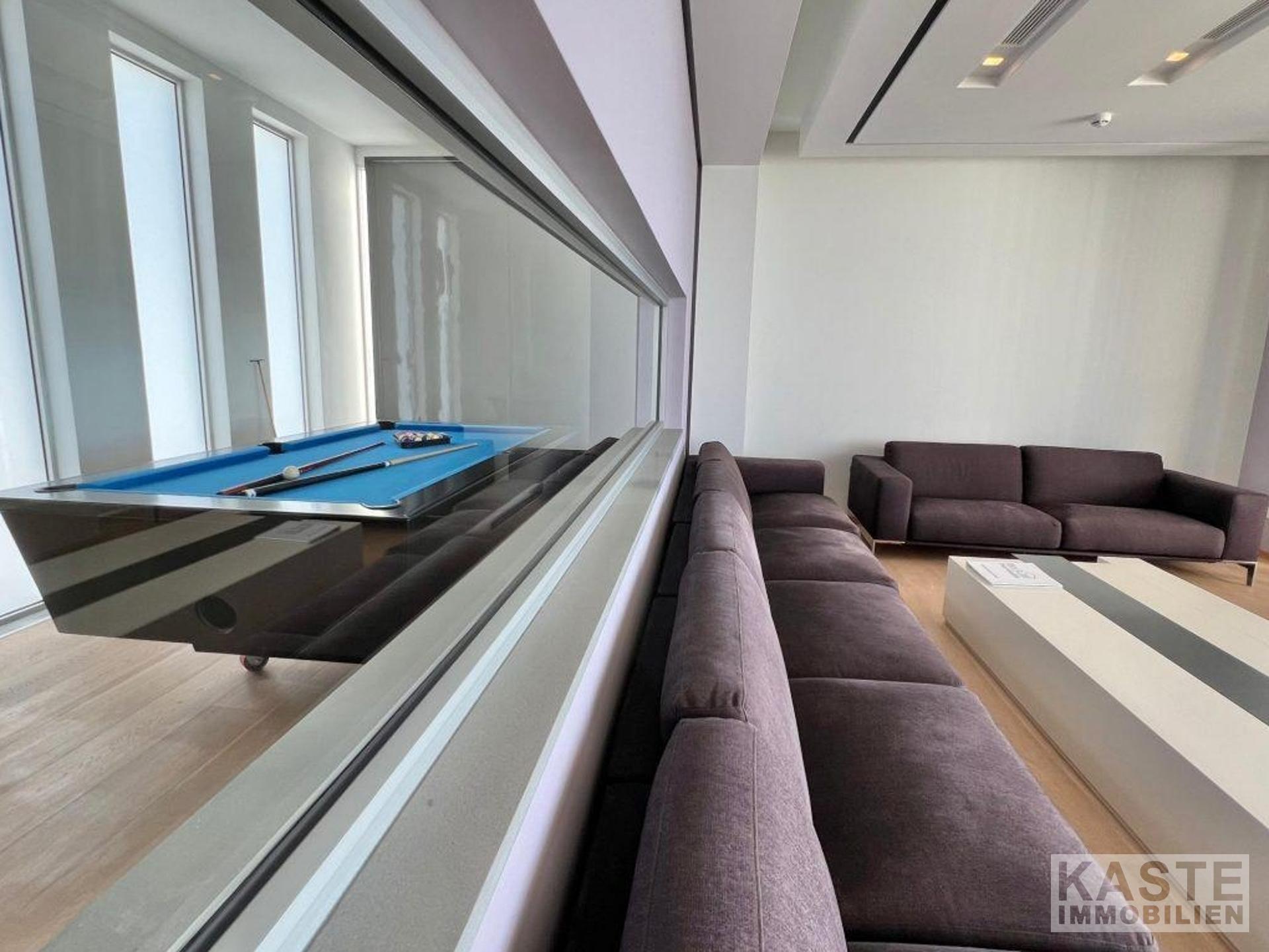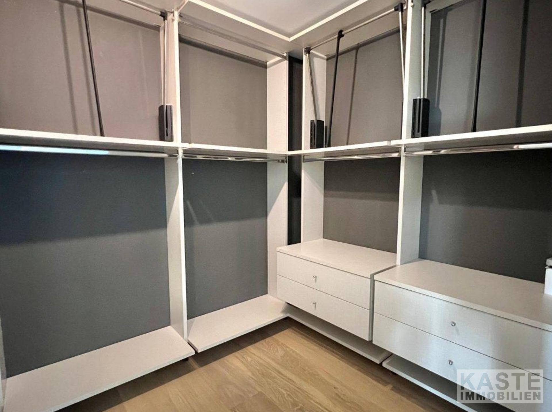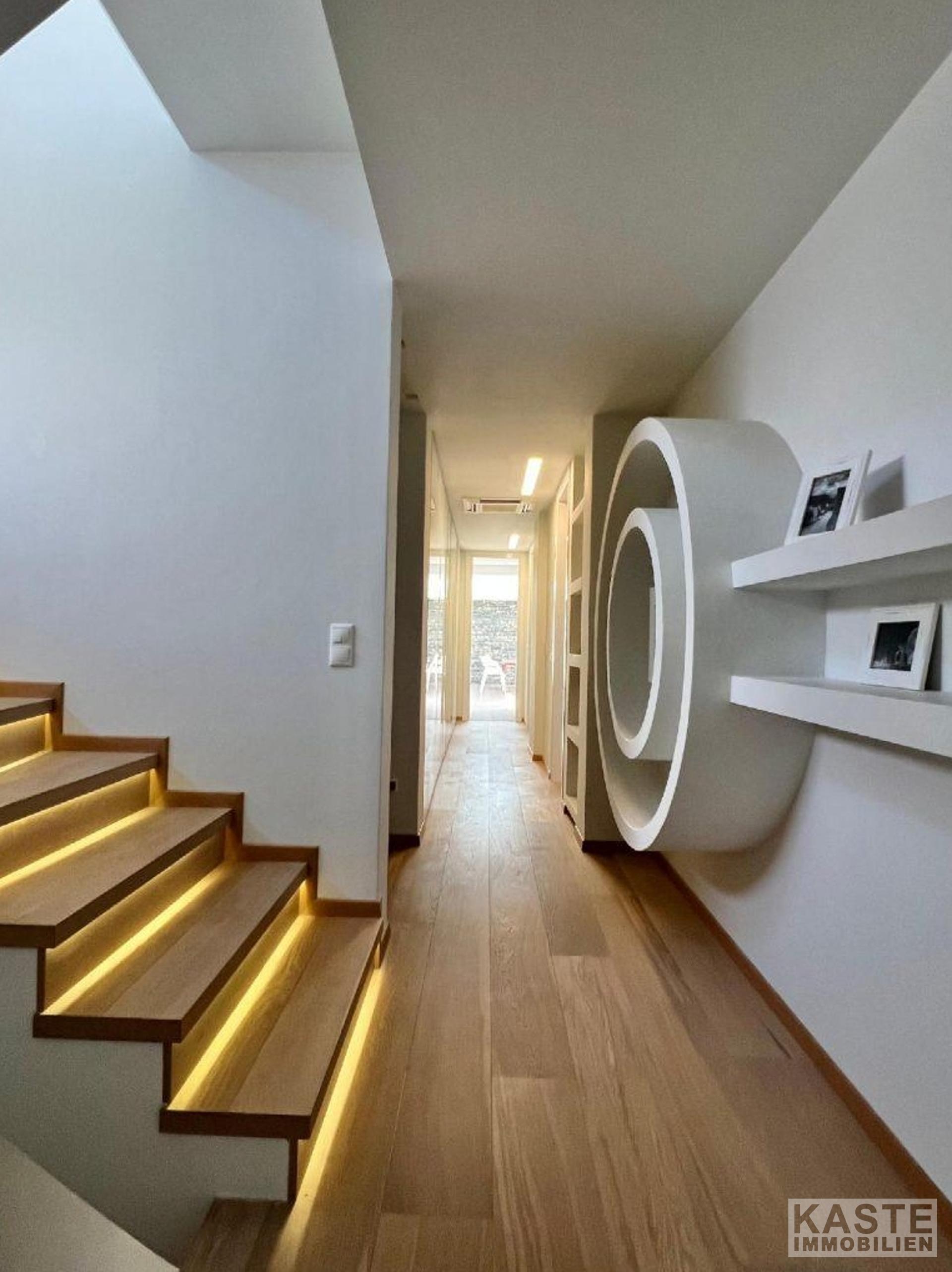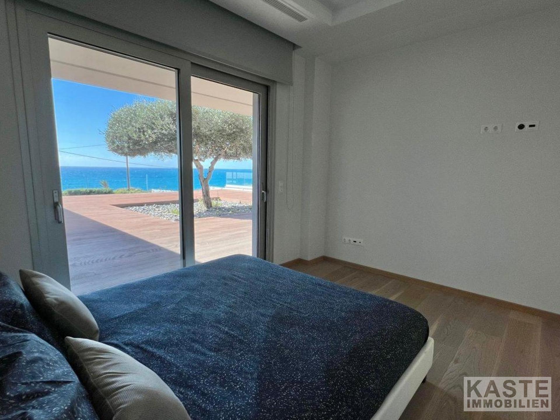 · Interne zentrale Eingangsbrücke und interne Holztreppe zum Keller · Aufzug mit Zugang zum Untergeschoss · Großes Wohnzimmer · Küche mit hochwertiger Ausstattung, grifflosen Schränken und einer einzigartigen Insel, die elegant durch ausziehbare Paneele versteckt werden kann · Balkon-Terrasse (25m²) mit unverbautem Blick auf das Libysche Meer, geschützt durch Fensterläden aus Teakholz · W/C mit schwarzen Glaswänden vom Boden bis zur Decke · Klimaanlage in allen Zimmern mit voller Autonomie