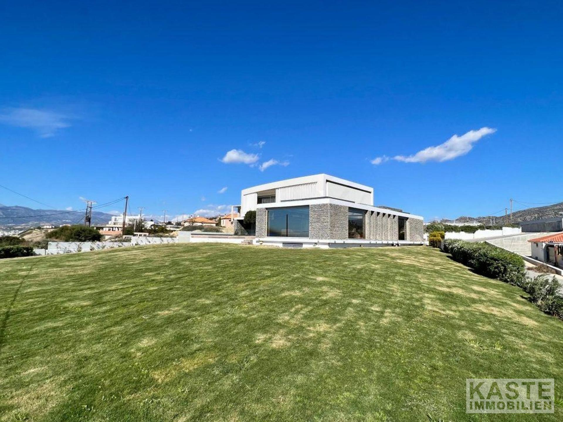 Es handelt sich um eine luxuriöse Villa, die auf einem 3.000m2 großen Grundstück etwa 3 km außerhalb der Stadt Ierapetra an der Straße nach Makrigialos errichtet wurde. Das ebene Grundstück weist eine leichte Neigung nach Süden auf und bietet einen atemberaubenden, ungehinderten Blick auf das Libysche Meer, die Stadt Ierapetra und die Insel Chrissi.