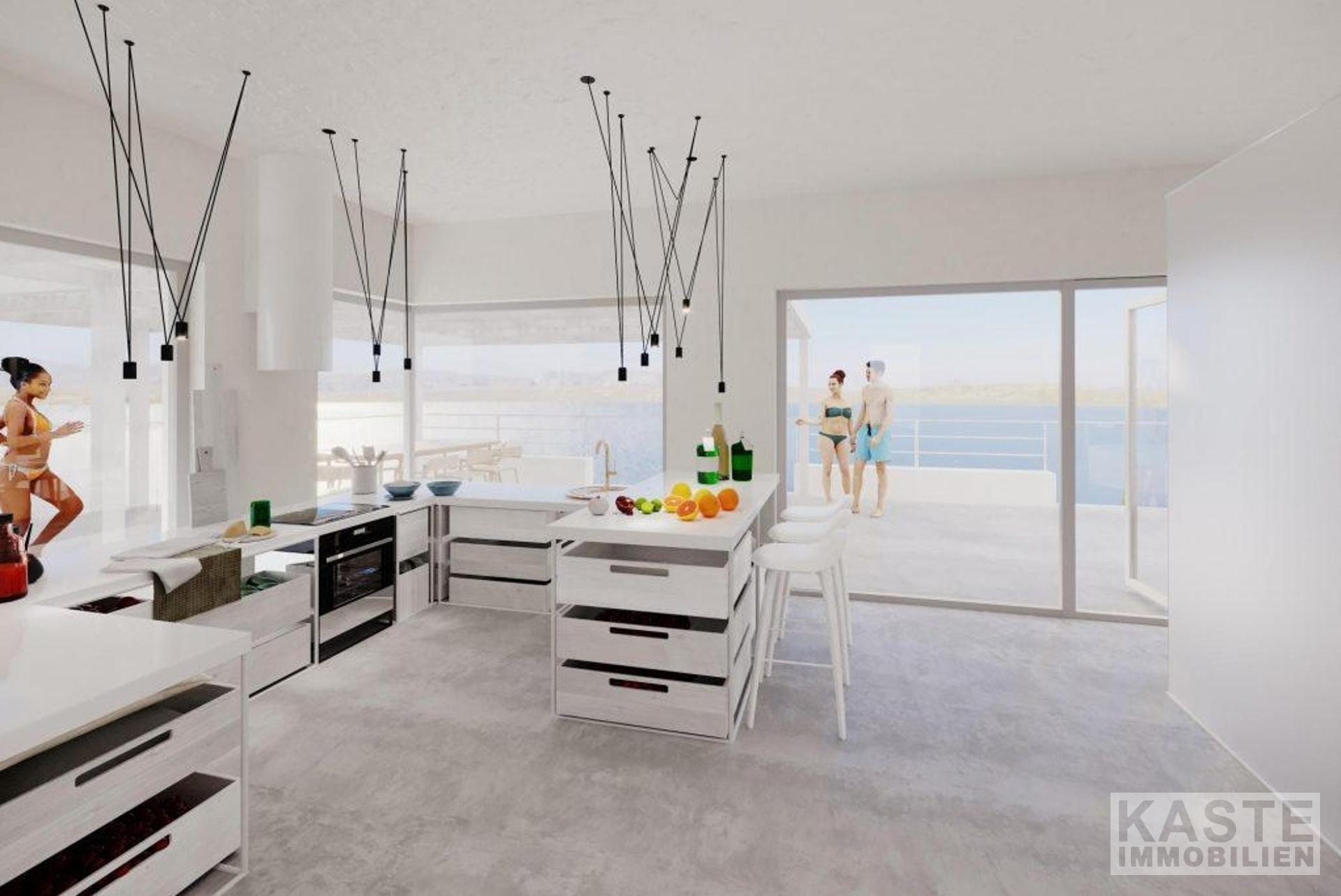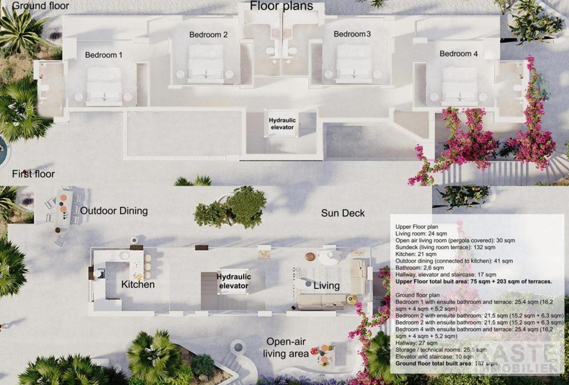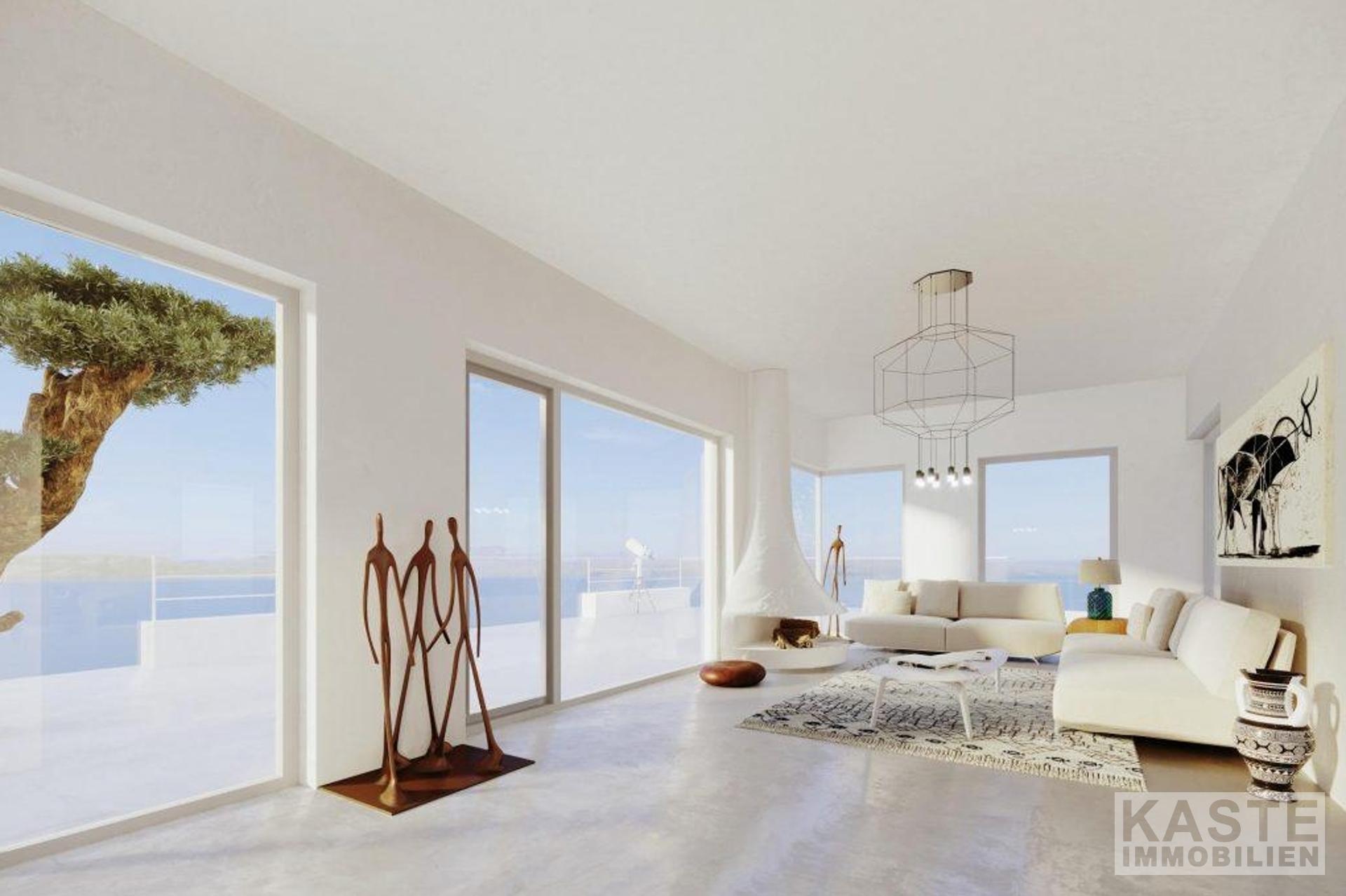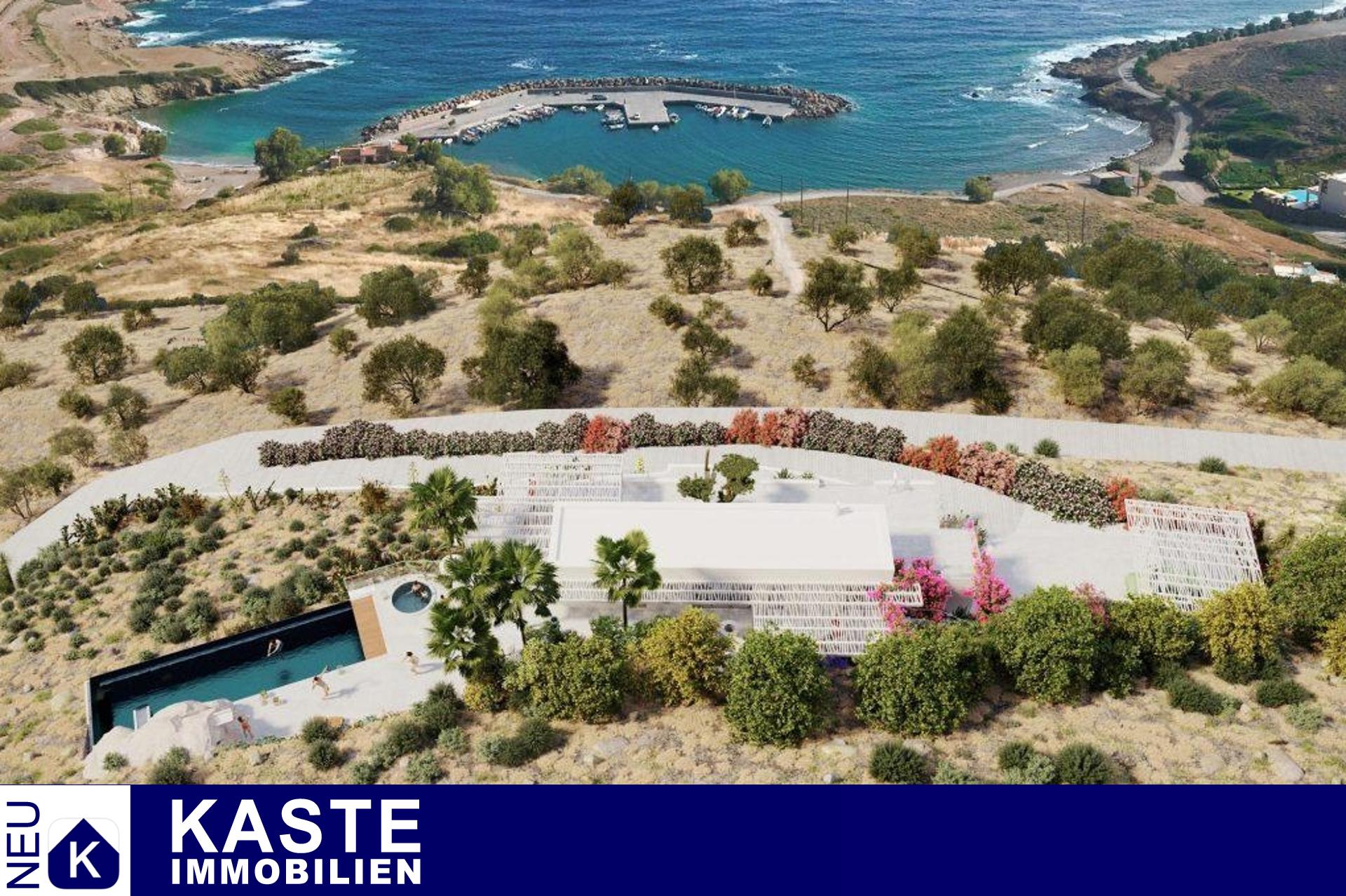 Dieses unverwechselbare Privatanwesen, das die kretische Rauheit in die Eleganz der mediterranen Architektur einfließen lässt, fügt sich elegant in die wilde Küstenlinie und die Höhenlage ein und bietet unübertroffene Aussichten und Privatsphäre in einer einmaligen Umgebung. Eingebettet in ein natürliches Amphitheater über dem Meer, das die Geräusche der Wellen einfängt, die an windigen Tagen über die Küste brechen, bietet dieses Anwesen ein einzigartiges Erlebnis mit einem perfekten Gleichgewicht zwischen der Schönheit der Natur und dem vom Menschen geschaffenen Luxus. Gleich beim betreten der modernen Designer Villa fällt die voll ausgestattete offene Küche mit einem Esstisch für 10 Personen auf. Neben der offenen Küche befindet sich ein gemütliches Wohnzimmer mit einen stilvollen Holzkamin. Durch die großen Glasschiebetüren gelangt man auf die Terrasse mit einem Infinity- Pool. Der lange Infinity-Pool besitzt eine bemerkenswerte Aussicht auf die Bucht von Mirabello und weist durch die Zusammenstellung von bequemen Sonnenliegen einen Loungebereich auf. Auch eine Getränkebar befindet sich in Griffnähe - Und nicht zu vergessen, der luxuriöse 4-Personen-Jacuzzi. Des weiteren gibt es im Erdgeschoss noch ein Gäste-WC mit Dusche. Zusätzlich zum sorgfältig gefertigten Komfort ist das Erdgeschoss und der erste Stock durch einen hydraulischen Aufzug verbunden. Im Obergeschoss befinden sich 4 große Schlafzimmer mit großen handgefertigten Betten und jeweils einen En-Suite-Badezimmer. Als Besonderheit ist es möglich die hervorragende Aussicht auf das Meer von jedem Raum der Villa aus zu genießen. In allen Empfangs- und Schlafzimmern gibt es Klimaanlagen, die sowohl die Räume kühlen als auch heizen. Außerdem gibt es ein CC-Videoüberwachungssystem im gesamten Wohnbereich und das Zugangstor ist elektrisch fernsteuerbar.