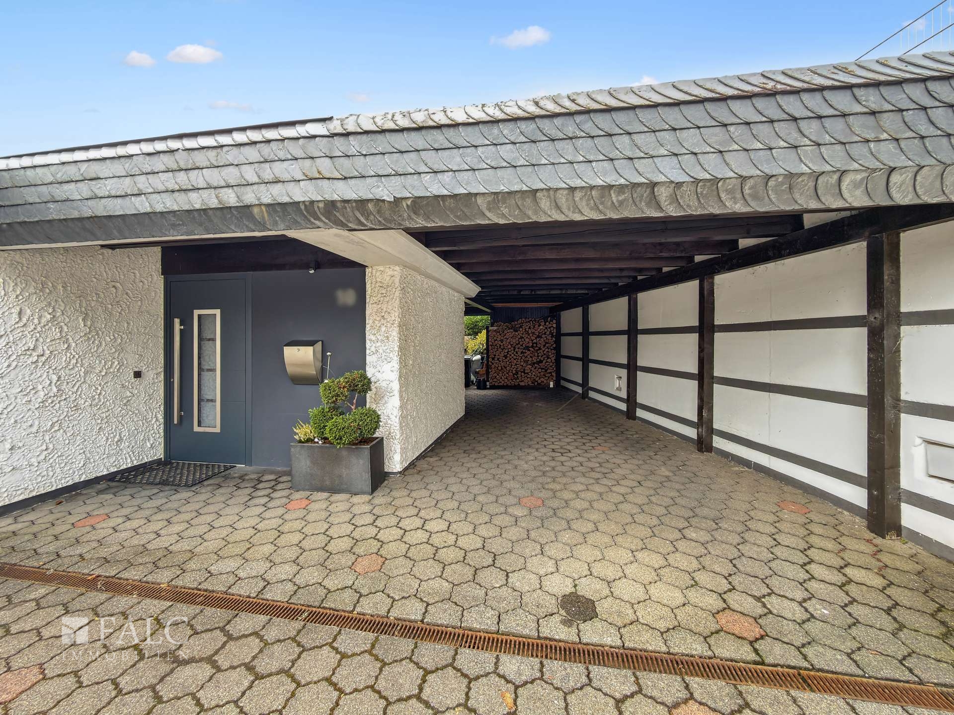 Praktische Nebenräume wie eine Waschküche im Haus sowie einen Kellerbereich mit Bar, Heizungsraum, Badezimmer und zusätzlicher Abstellfläche runden das Raumangebot ab. Im Außenbereich stehen zudem zwei Pkw Stellplätze unter dem Carport und weitere Stellplätze in der großen Einfahrt zur Verfügung.