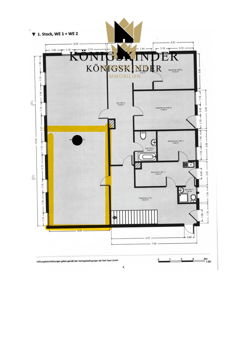 Die Eigentumswohnung befindet sich derzeit als offene Fläche im 1. Obergeschoss und bietet eine Fläche von ca. 45 m². Der Ausbau der Wohnung steht noch aus und kann von einem Käufer nach Bedarf, ggf. als „Loft“ mittels Trockenbau realisiert werden. Sämtliche Ver- und Entsorgungsleitungen befinden sich in der Wand.