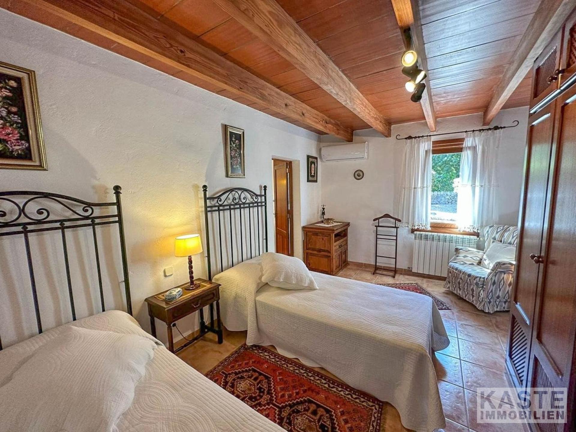 Innenbereich: Im Inneren erwarten Sie großzügige, klimatisierte Räume, die das ganze Jahr über für eine angenehme Temperatur sorgen. Im Erdgeschoss befinden sich eine voll ausgestattete Küche, eine Waschküche, eine Eingangshalle mit Gästetoilette und ein geräumiges Wohnzimmer mit Holzofen und direktem Zugang zur Terrasse und zum Poolbereich.