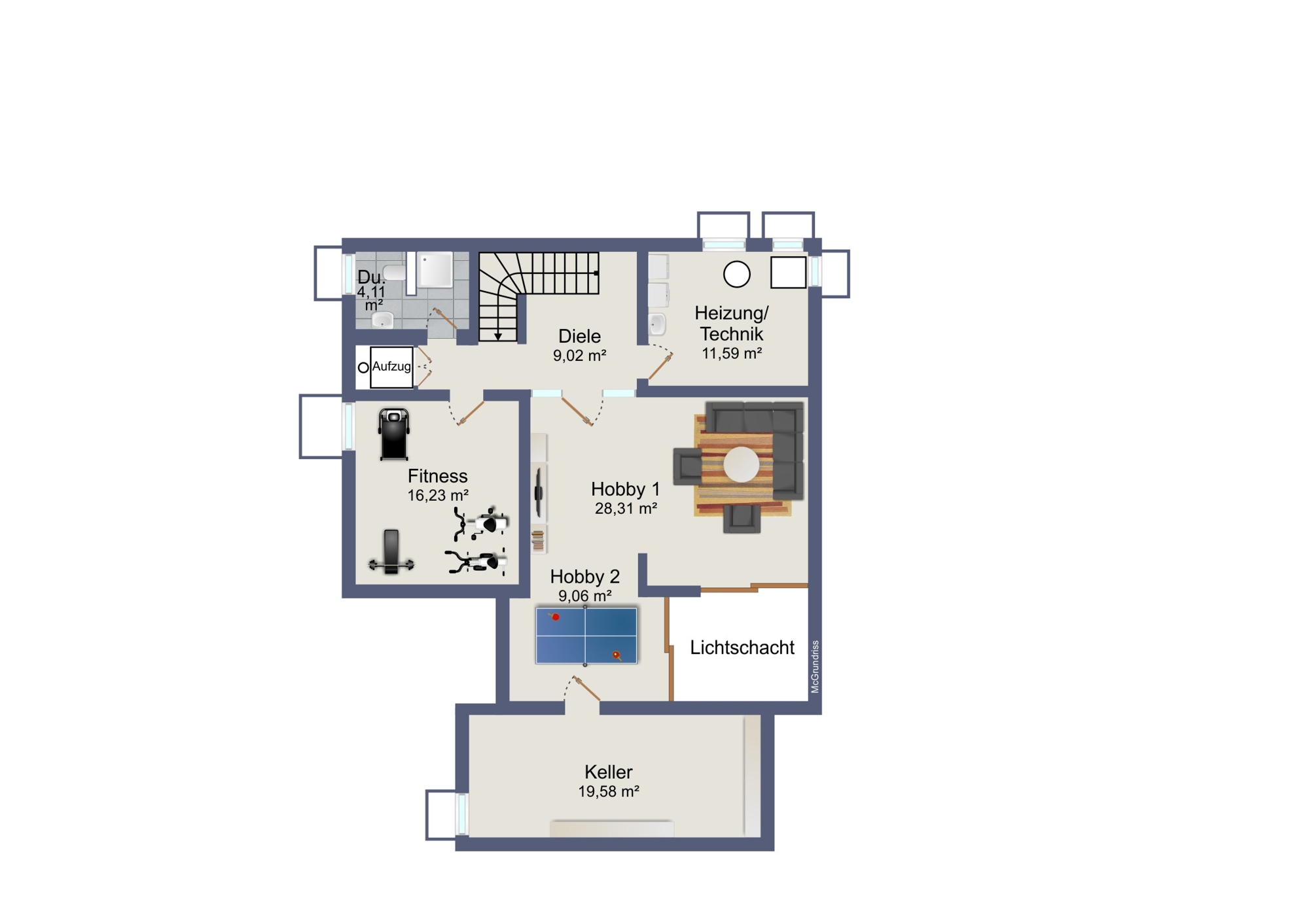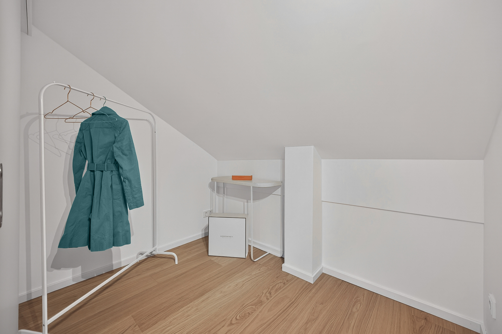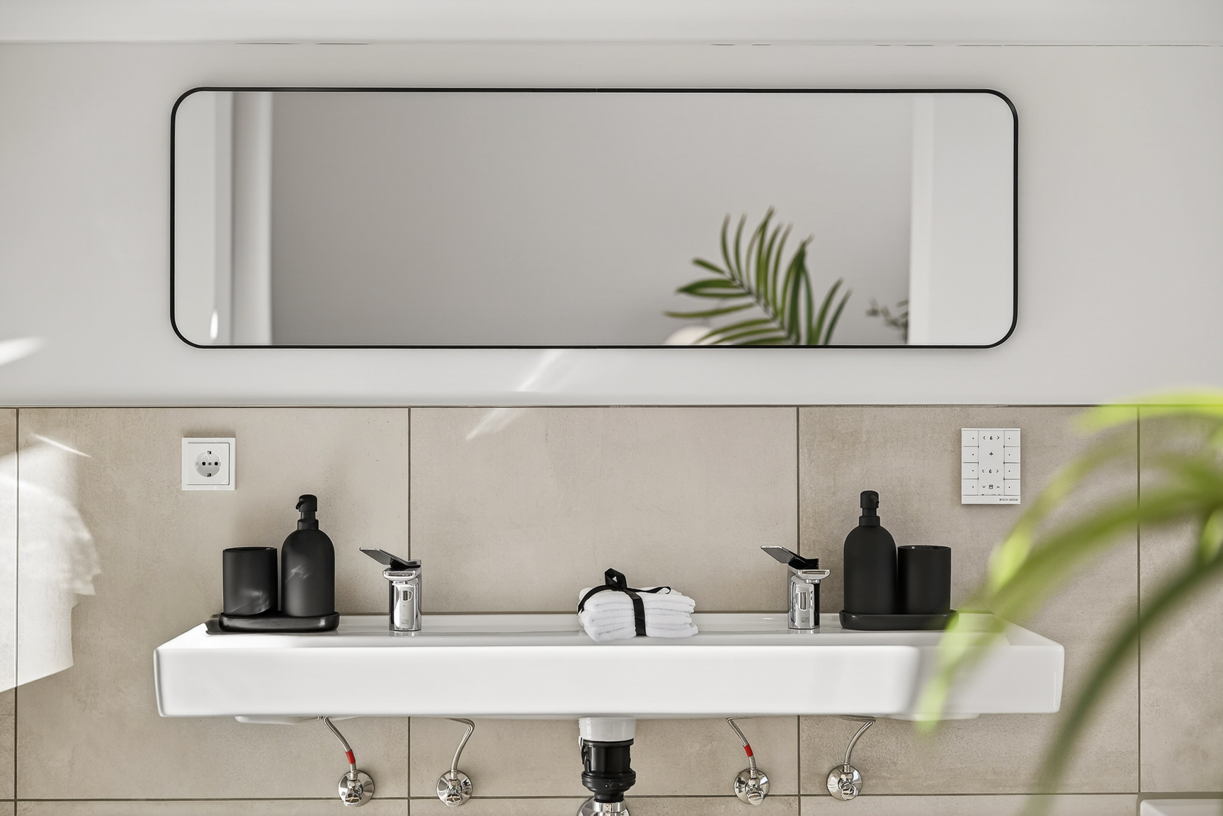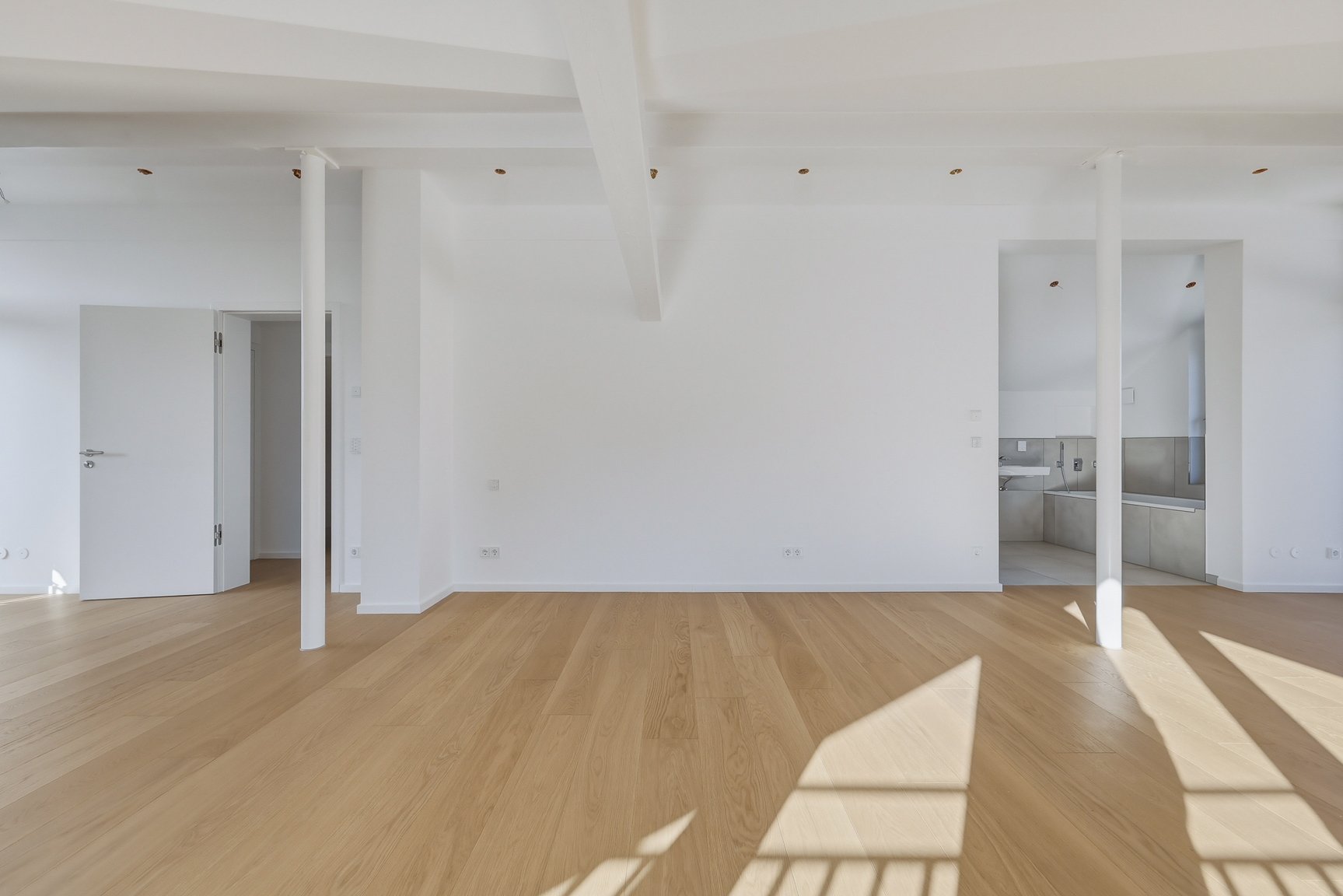 Im Dachgeschoss präsentiert sich das eindrucksvolle Master Bedroom mit en-Suite Bad; Armaturen von Dornbracht und Sanitärinstallationen von Villeroy & Boch zeichnen die hochwertige Ausstattung aus. Zwei weitere Bäder im Ober- bzw. Untergeschoss setzen zusätzliche Komfortakzente. Das Untergeschoss verfügt über ein weiteres Schlafzimmer mit daneben liegendem Badezimmer sowie einen Fitnessraum – ein perfekter Rückzugsort für Gäste mit exklusiver Privatsphäre. Die durchgängige Fußbodenheizung in allen Etagen ermöglicht eine wohlige und angenehme Wärme, während die modernen Holz-Alu Fenstersysteme für eine hervorragende Energieeffizienz sorgen.