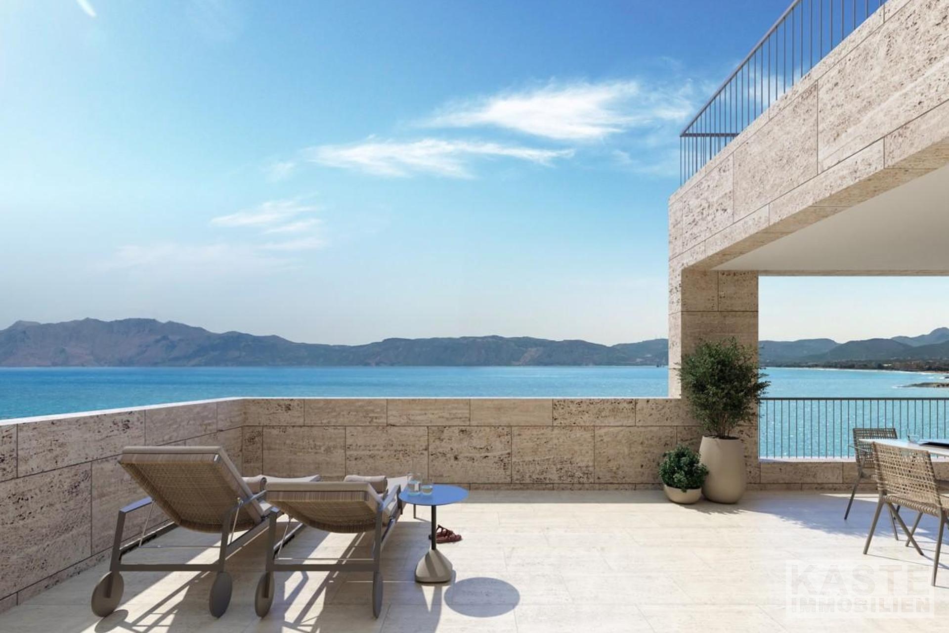 Dieses exklusive Projekt bietet eine einzigartige Gelegenheit, luxuriöses Wohnen an der Ägäis zu erleben. Mit viel Liebe zum Detail entworfen, fügt sich jede Residenz perfekt in die natürliche Landschaft ein und bietet einen atemberaubenden Blick auf die Halbinsel Gramvousa und die ruhige Küste. Die Apartments im Erdgeschoss bieten den seltenen Vorteil, direkt am Meer zu liegen und dennoch absolute Privatsphäre zu genießen. Diese Residenzen verfügen über großzügige offene Wohnbereiche, zwei Doppelschlafzimmer und private Innenhöfe auf der Vorder- und Rückseite. Eine Einheit verfügt über einen Swimmingpool mit Eckblick, während alle drei Apartments private Gärten und Sitzbereiche im Freien bieten, ideal, um das Meer und die Sonne zu genießen. Die terrassenförmig angeordneten Maisonette-Wohnungen sind auf zwei Ebenen angelegt und verfügen über ein oder drei Doppelschlafzimmer. Diese durchdachten Wohnungen verbinden Funktionalität mit Luxus und verfügen über zwei großzügige private Balkone mit unverbaubarem Blick auf die Küste. Diese Wohnungen sind perfekt für diejenigen, die Entspannung im Freien und Privatsphäre schätzen, und bieten ein raffiniertes und vielseitiges Wohnerlebnis. Die Terrassenwohnungen, die mit einem oder zwei Schlafzimmern erhältlich sind, bieten ein außergewöhnliches Wohnambiente im Innen- und Außenbereich. Diese Residenzen sind in einer raffinierten, neutralen Ästhetik gestaltet und verfügen über großzügige Terrassen mit unverbaubarem Meerblick, die sich perfekt genießen lassen. Alle Residenzen sind mit einer hochwertigen Ausstattung versehen, darunter Klimaanlage, umweltfreundliche Infinity-Pools mit Sonnenliegen und wunderschön angelegte Gemeinschaftsgärten mit einheimischer Flora und Bewässerungssystemen. Ein begrüntes Dach unterstreicht das Engagement des Projekts für Nachhaltigkeit und Ästhetik. Dieses Projekt setzt neue Maßstäbe für das Leben am Mittelmeer und bietet die perfekte Mischung aus Privatsphäre, Luxus und natürlicher Schönheit für alle, die einen raffinierten und ruhigen Lebensstil am Meer suchen.