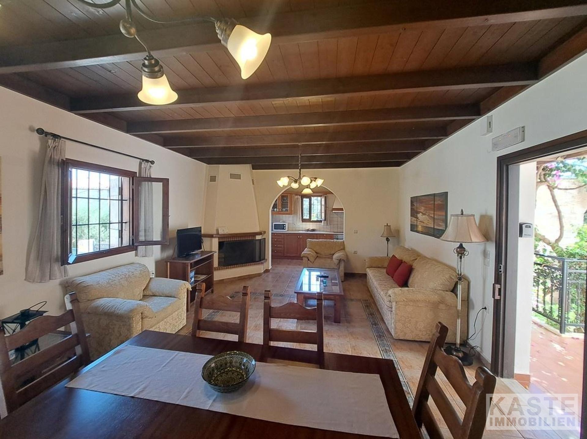 Diese hochwertige Maisonette-Wohnung befindet sich in dem idyllischen kretischen Dorf Douliana, einer Oase der Ruhe und des Wohlbefindens in Apokoronas. Mit einer großzügigen Wohnfläche von 142 m² bietet das Anwesen ein harmonisches Wohnambiente verteilt auf zwei Ebenen. Im Erdgeschoss erwartet Sie ein heller, offener Wohnbereich mit einem behaglichen Kamin, ideal für gemütliche Stunden mit Familie und Freunden. Ergänzt wird dieser durch einen einladenden Essbereich sowie eine vollausgestattete, moderne Einbauküche, die sowohl Funktionalität als auch Stil vereint.