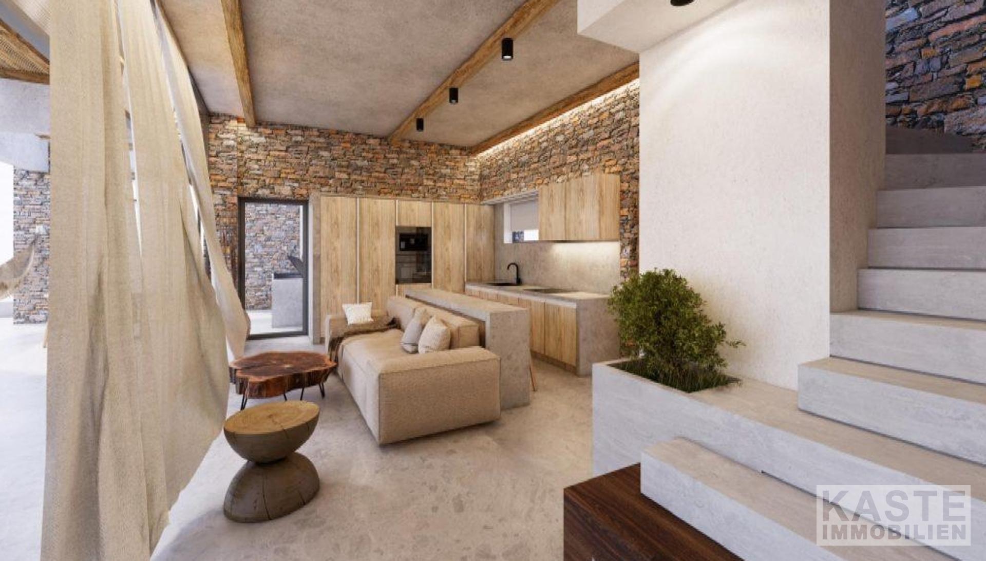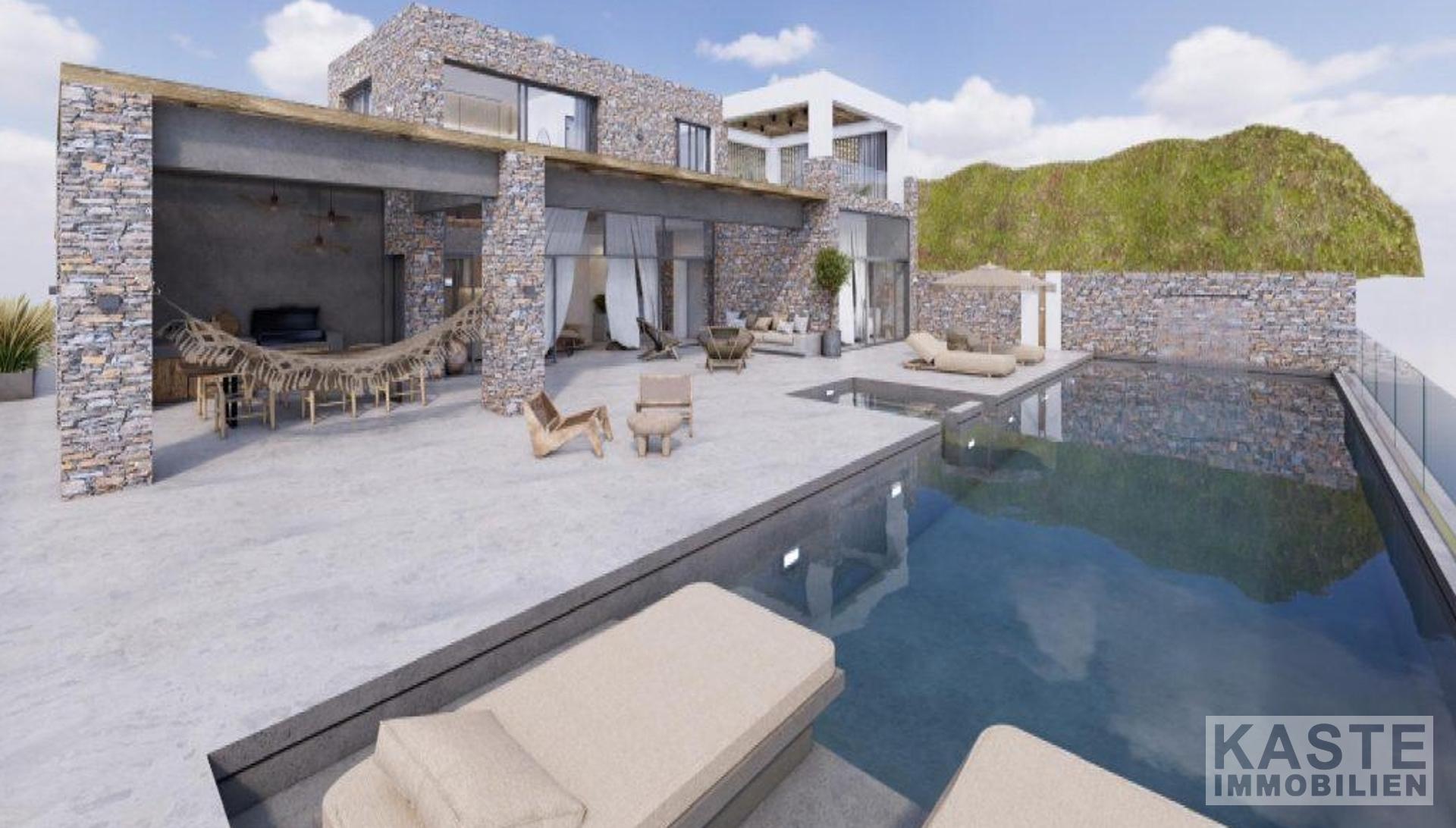 Der Außenbereich ist ein Highlight für sich. Ein 62,6 m² großer Swimmingpool mit angrenzendem 4,8 m² Whirlpool lädt zu erholsamen Stunden unter der mediterranen Sonne ein, begleitet von einer stilvollen Pergola mit Grillstation und Platz zum geselligen Beisammensein. Die natürliche Steinoptik innen und außen sorgt für die perfekte Symbiose aus traditioneller Architektur und modernem Wohnkomfort. Klimaanlage ist selbstverständlich vorhanden, um angenehme Temperaturen in allen Jahreszeiten zu garantieren.