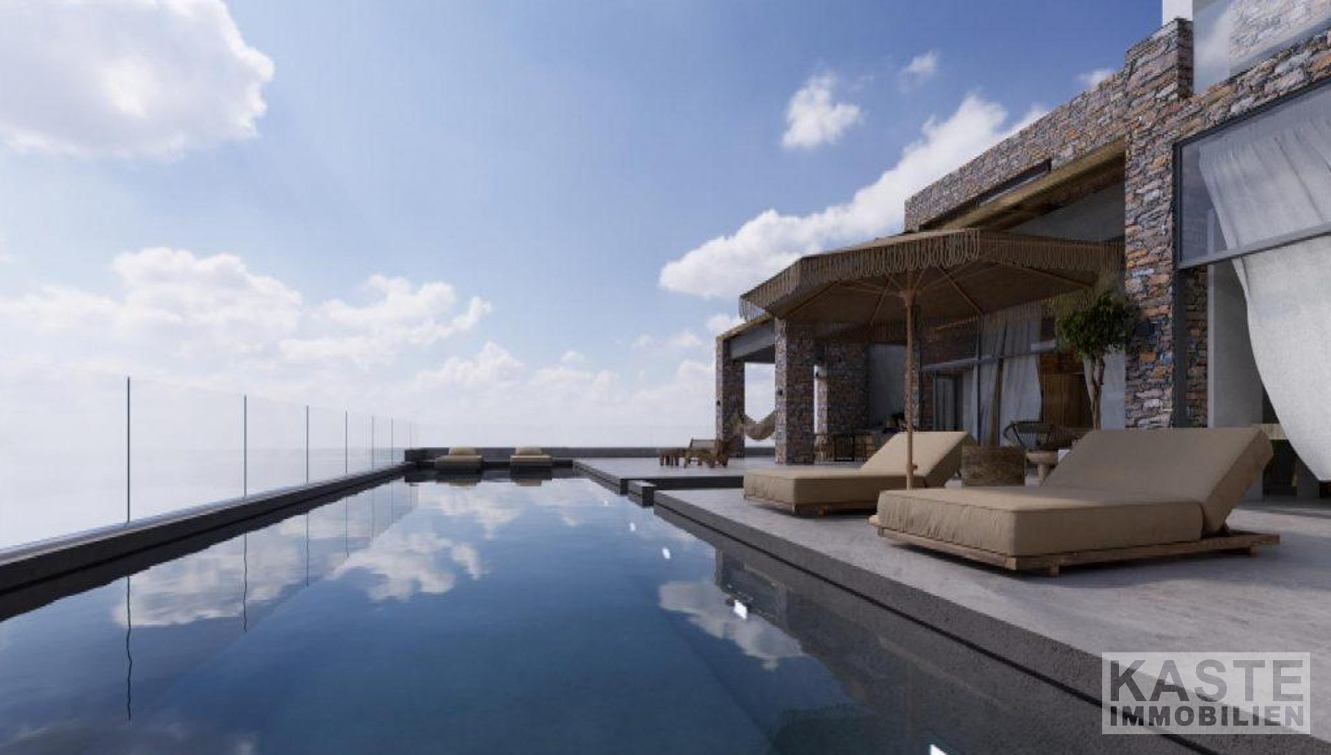 Außenbereich & Grundstück - 2.200 m² großzügiges Grundstück - 62,6 m² Swimmingpool mit 4,8 m² Whirlpool - Pergola mit Grillbereich - Großzügige Terrasse mit Meerblick