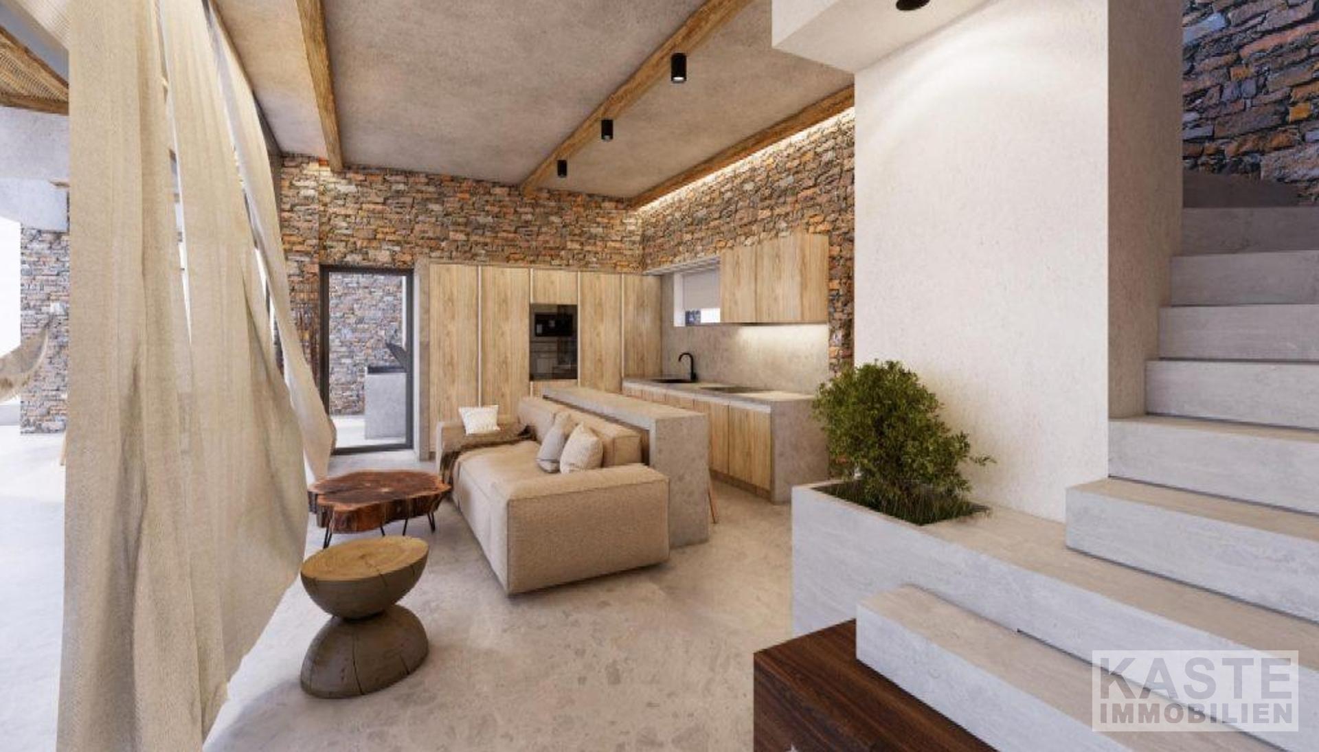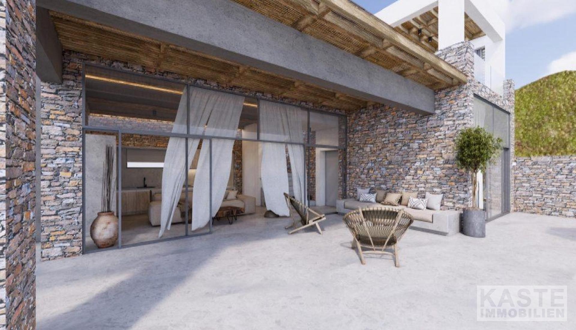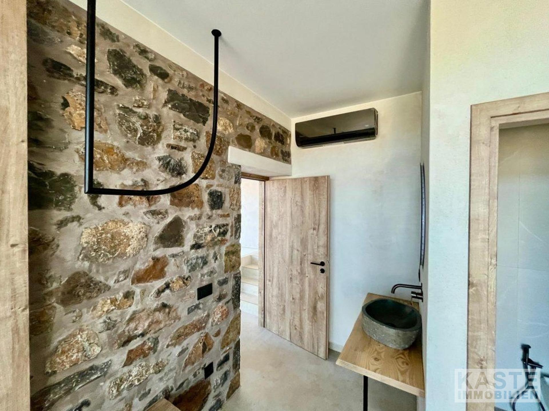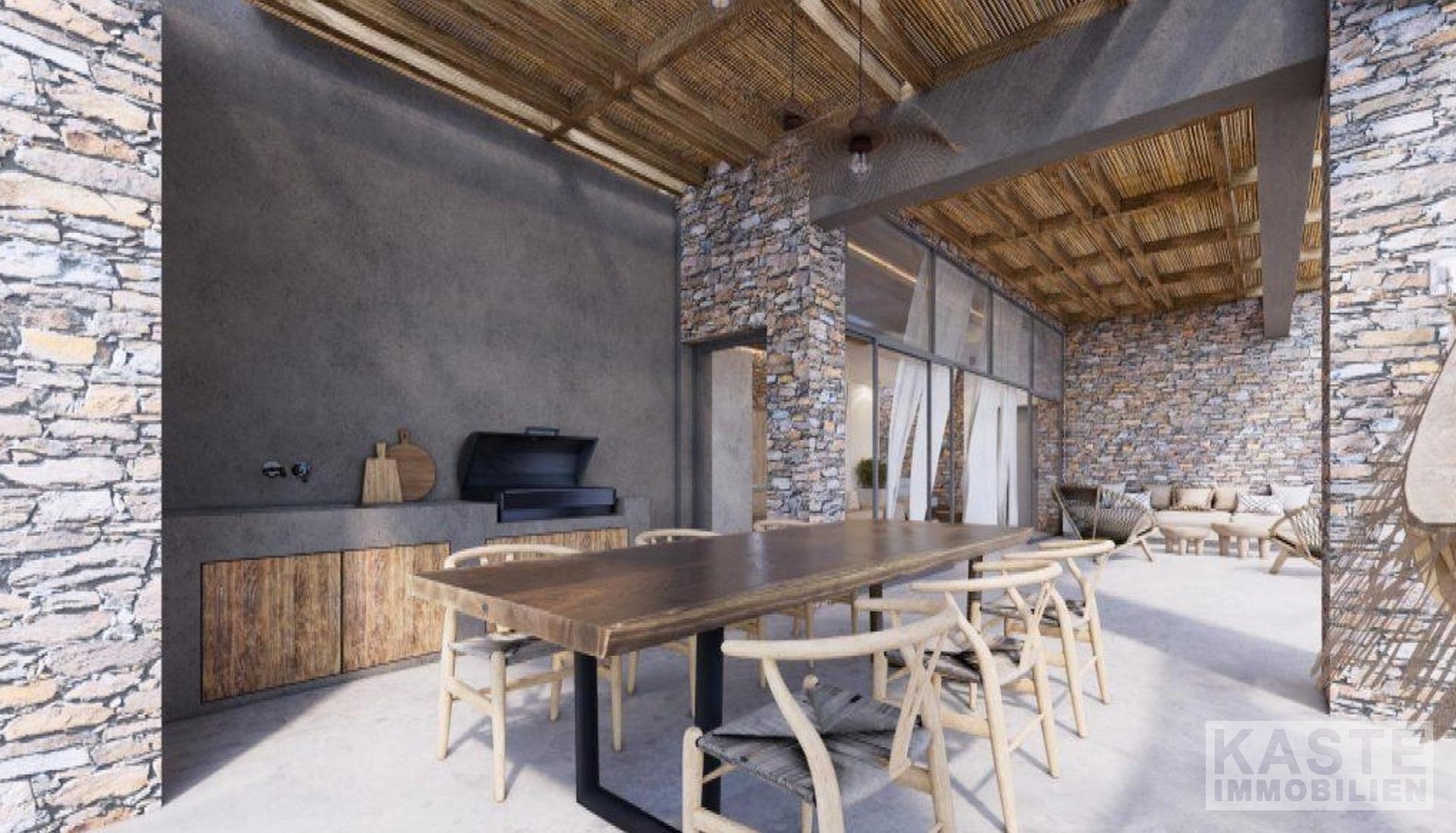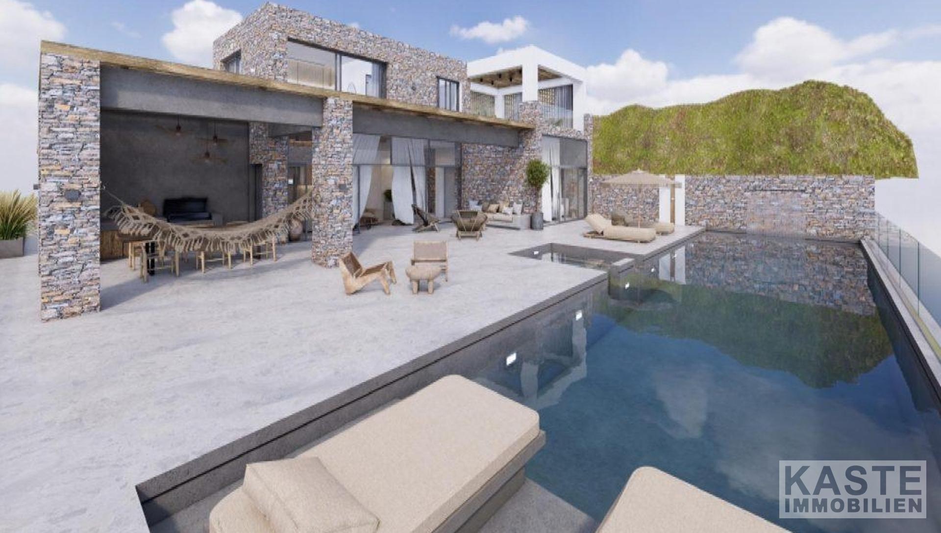 Der Außenbereich ist ein Highlight für sich. Ein 62,6 m² großer Swimmingpool mit angrenzendem 4,8 m² Whirlpool lädt zu erholsamen Stunden unter der mediterranen Sonne ein, begleitet von einer stilvollen Pergola mit Grillstation und Platz zum geselligen Beisammensein. Die natürliche Steinoptik innen und außen sorgt für die perfekte Symbiose aus traditioneller Architektur und modernem Wohnkomfort. Klimaanlage ist selbstverständlich vorhanden, um angenehme Temperaturen in allen Jahreszeiten zu garantieren.