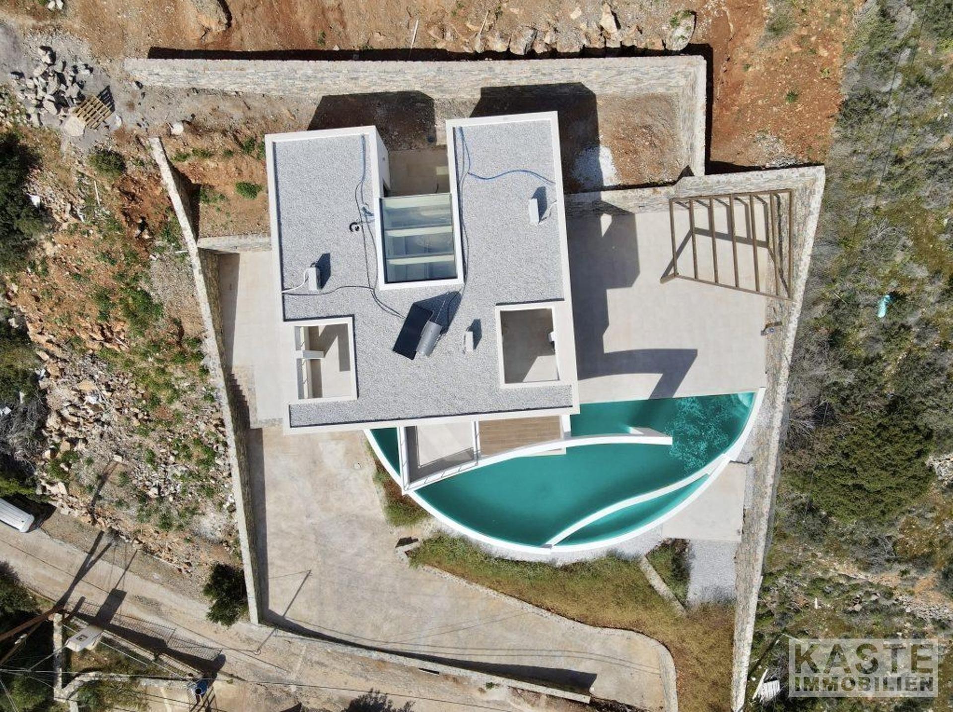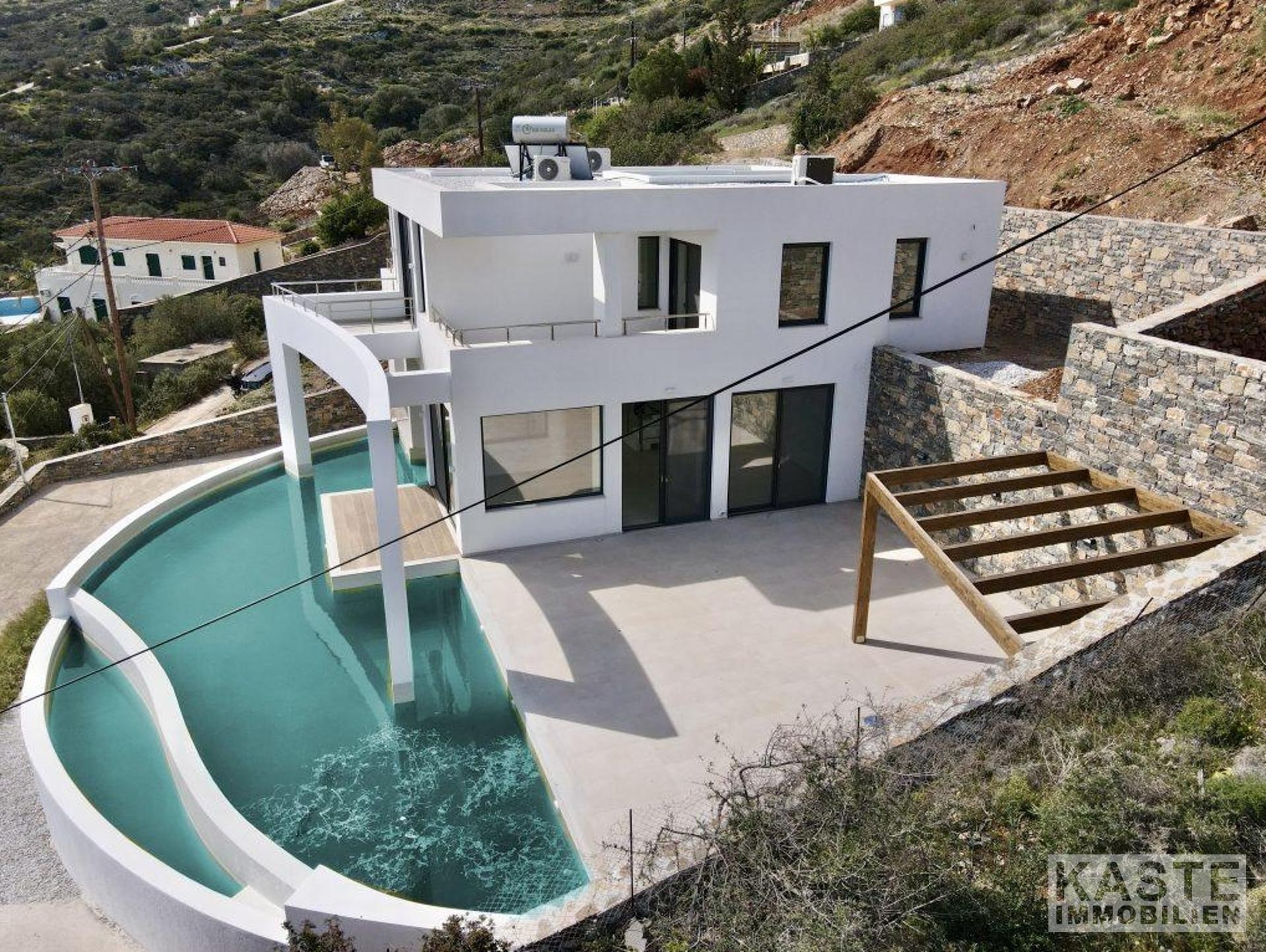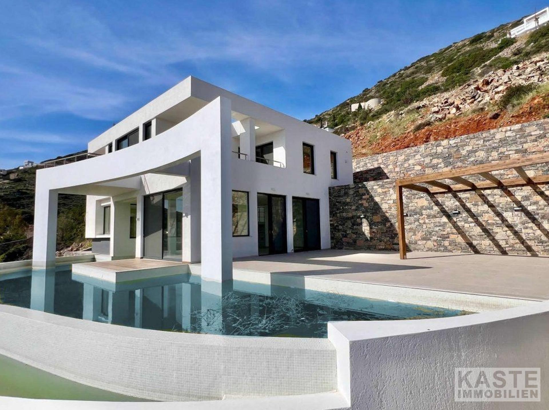 Diese exklusive, neu gebaute Villa in Elounda auf Kreta bietet eine harmonische Kombination aus luxuriösem Komfort, privater Atmosphäre und einer beeindruckenden natürlichen Umgebung. Nur 550 Meter von der malerischen Küste entfernt, eröffnet sich Ihnen ein spektakulärer Panoramablick auf das glitzernde Meer, die sanften Hügel und die beschauliche Landschaft, der ideale Rückzugsort sowohl zum Entspannen als auch zum dauerhaft entspannten Wohnen.
