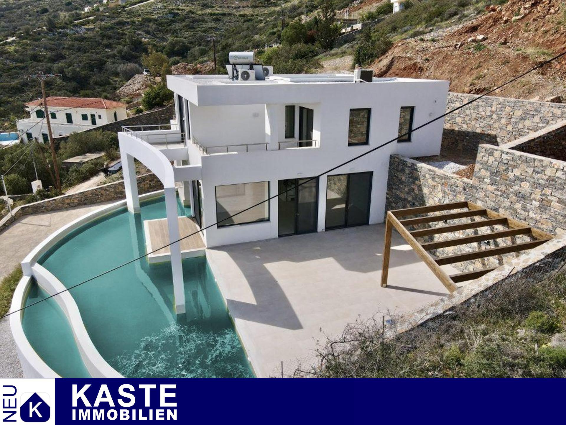 Diese exklusive, neu gebaute Villa in Elounda auf Kreta bietet eine harmonische Kombination aus luxuriösem Komfort, privater Atmosphäre und einer beeindruckenden natürlichen Umgebung. Nur 550 Meter von der malerischen Küste entfernt, eröffnet sich Ihnen ein spektakulärer Panoramablick auf das glitzernde Meer, die sanften Hügel und die beschauliche Landschaft, der ideale Rückzugsort sowohl zum Entspannen als auch zum dauerhaft entspannten Wohnen.