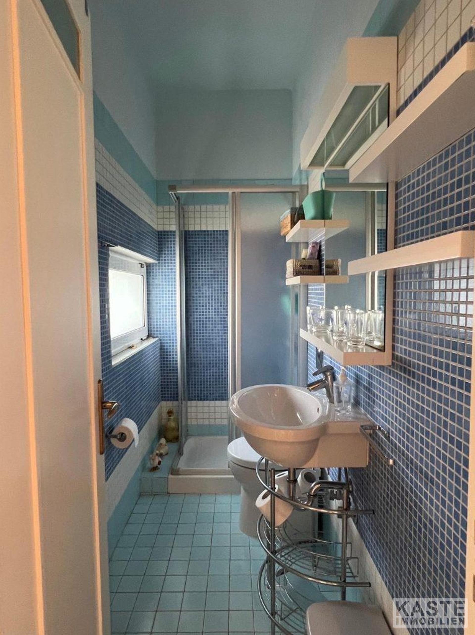 Eine elegante Treppe führt in den ersten Stock, wo sich ein Hauptschlafzimmer mit eigenem Badezimmer inklusive Badewanne und begehbarer Kleiderschrank befindet, sowie ein zweites Hauptschlafzimmer mit eigenem Badezimmer mit Dusche. Zudem beherbergt der erste Stock zwei weitere Doppelschlafzimmer und ein Badezimmer mit Badewanne.