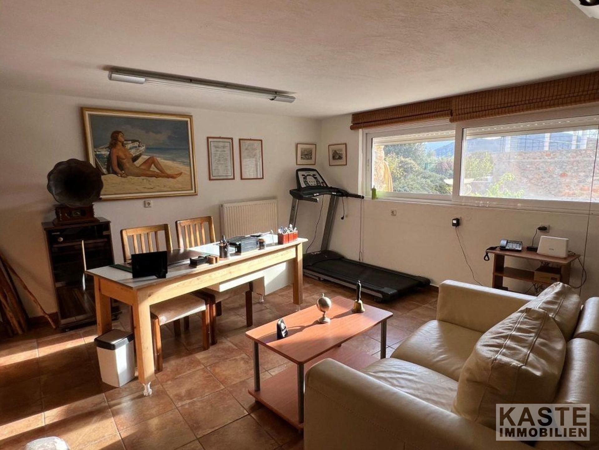 Im Untergeschoss befindet sich eine Garage für zwei Fahrzeuge, eine Waschküche und ein Abstellraum. Zusätzlich bietet dieses Stockwerk ein komfortables Büro und ein Gästeapartment mit Wohnzimmer, Doppelschlafzimmer und Badezimmer.