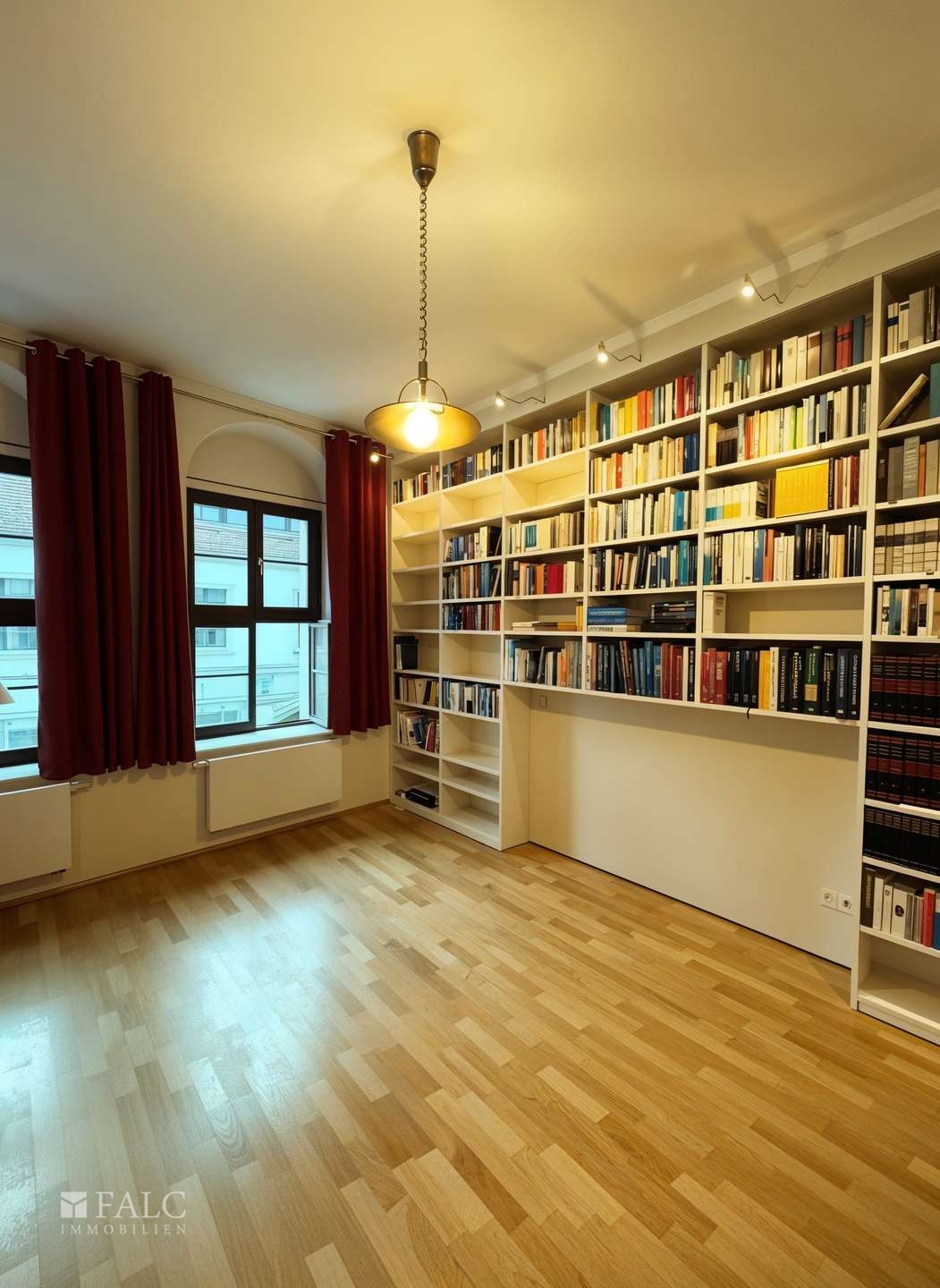 Ein weiteres Highlight ist das geräumige Arbeitszimmer, das sich ideal als Homeoffice oder Bibliothek eignet. Die großen Fenster sorgen auch hier für viel Tageslicht.