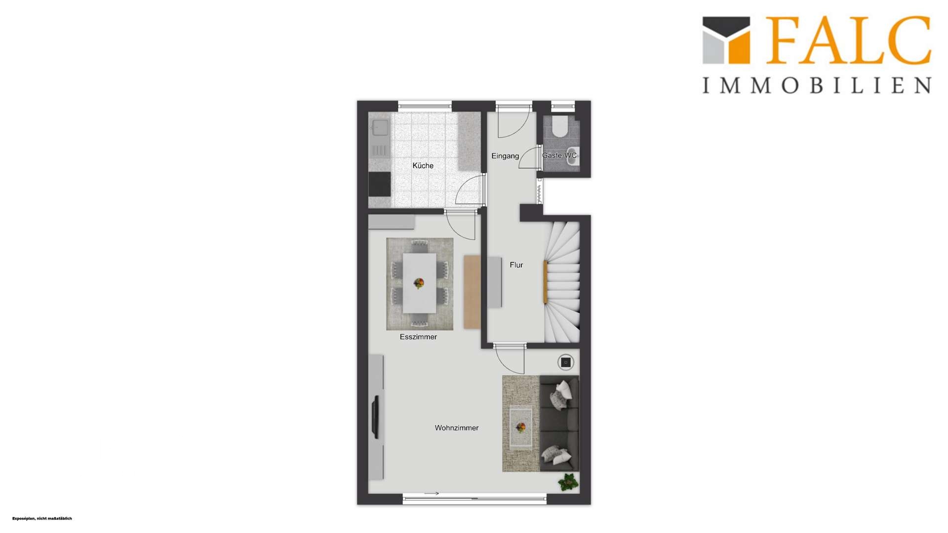 Zum Haus gehören - ein großzügiges Wohn- und Esszimmer - direkter Zugang zur Terrasse und Garten - eine separate Küche mit Gestaltungsmöglichkeiten - zwei gut geschnittene Kinderzimmer im Obergeschoss - ein Elternschlafzimmer mit angenehmer Größe (Nordausrichtung) - ein Badezimmer im Obergeschoss - ein Balkon im Obergeschoss (Südausrichtung) - Studio mit Vorinstallation Badezimmer - Keller mit viel Stauraum und zusätzlichem Nutzraum (z. B. Partyraum)