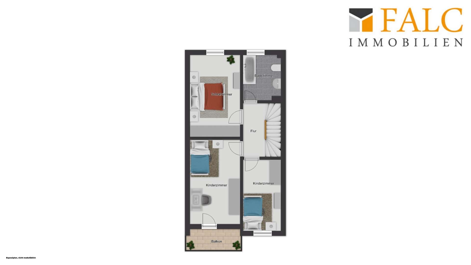 Das Obergeschoss bietet ausreichend Platz für die ganze Familie: Neben dem Elternschlafzimmer stehen zwei weitere Zimmer zur Verfügung, die sich ideal als Kinderzimmer, Homeoffice oder Gästezimmer nutzen lassen. Ergänzt wird diese Etage durch ein Badezimmer mit Badewanne.