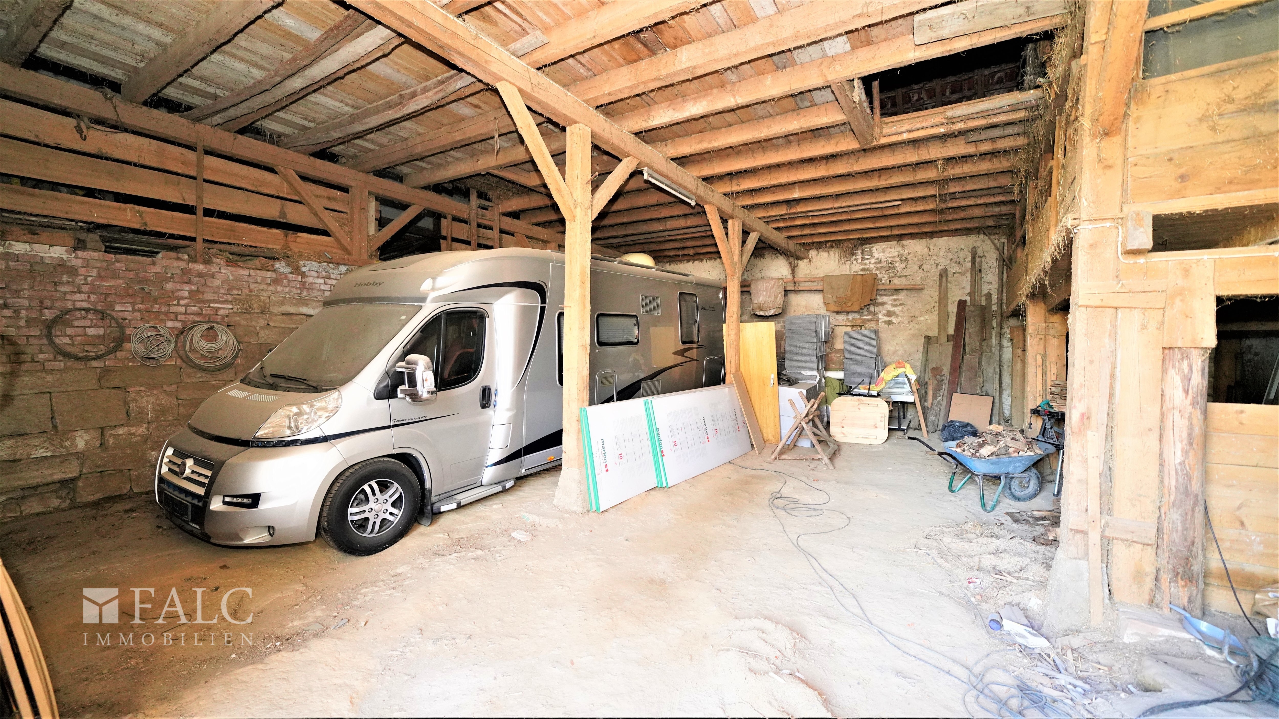 In den zum Haus gehörigen 3 Scheunen und der Garage findet sowohl der Fuhrpark als auch Ihr Hobby ausreichend Platz. Eine Höhe von etwa 5 Metern ermöglicht sogar den Einbau einer Hebebühne oder der Errichtung eines Heubodens.