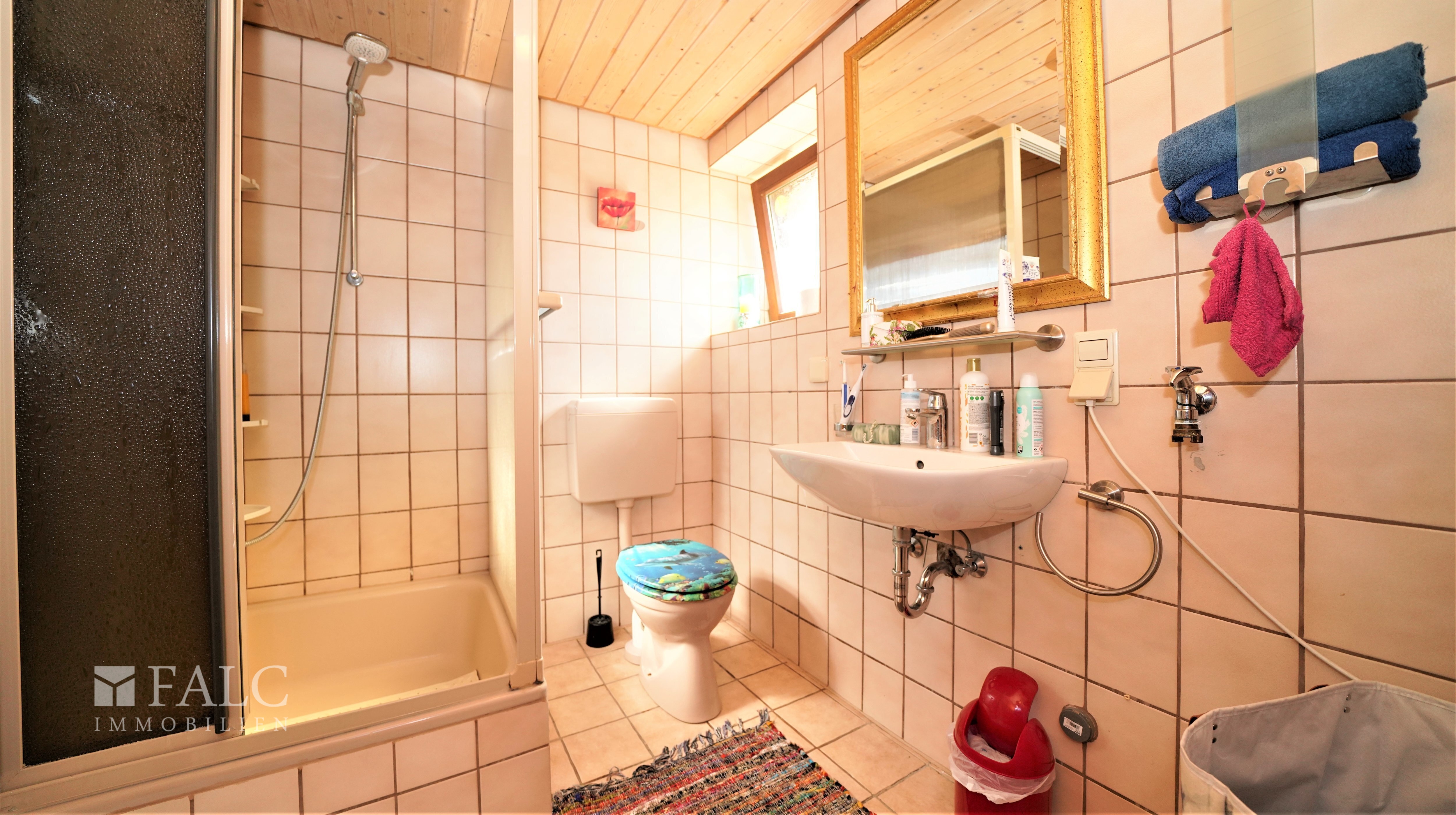 Ein eigenes Tageslicht-Bad steht ebenfalls zur Verfügung. Eine Wanne mit Whirlpool-Düsen lädt zu entspannenden Schaumbädern ein, eine ebenerdige Duschkabine erwartet Sie mit Massagedüsen und Regenduschkopf. Ein separates WC auf der Etage verhindert lästige Störungen beim Entspannen.