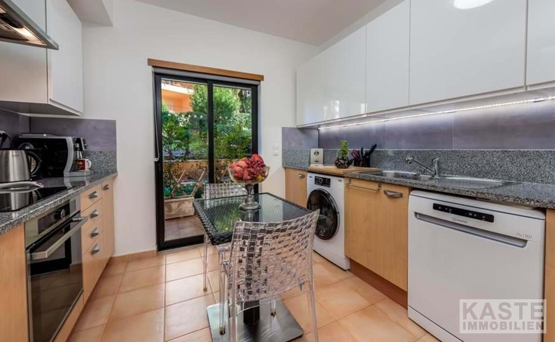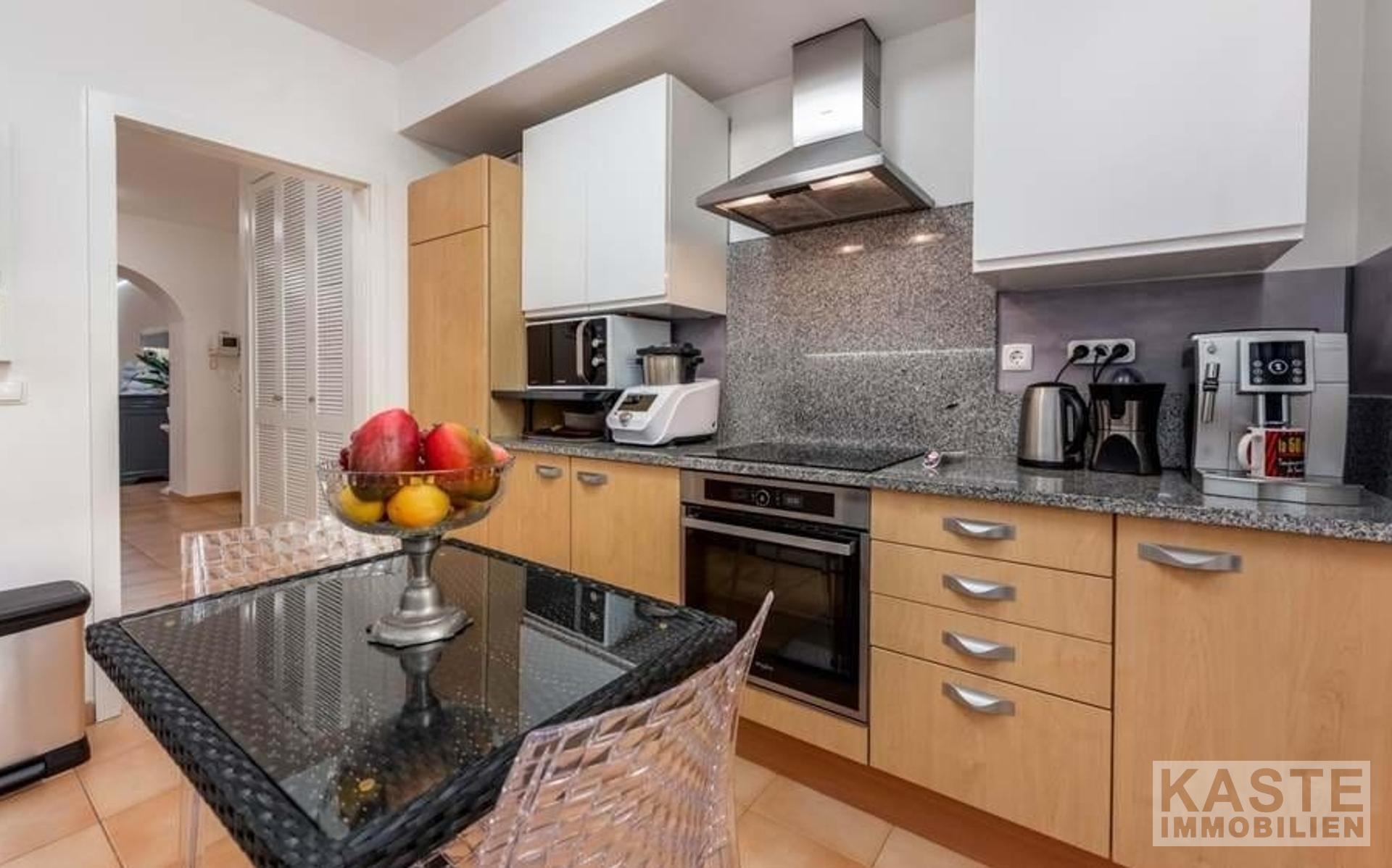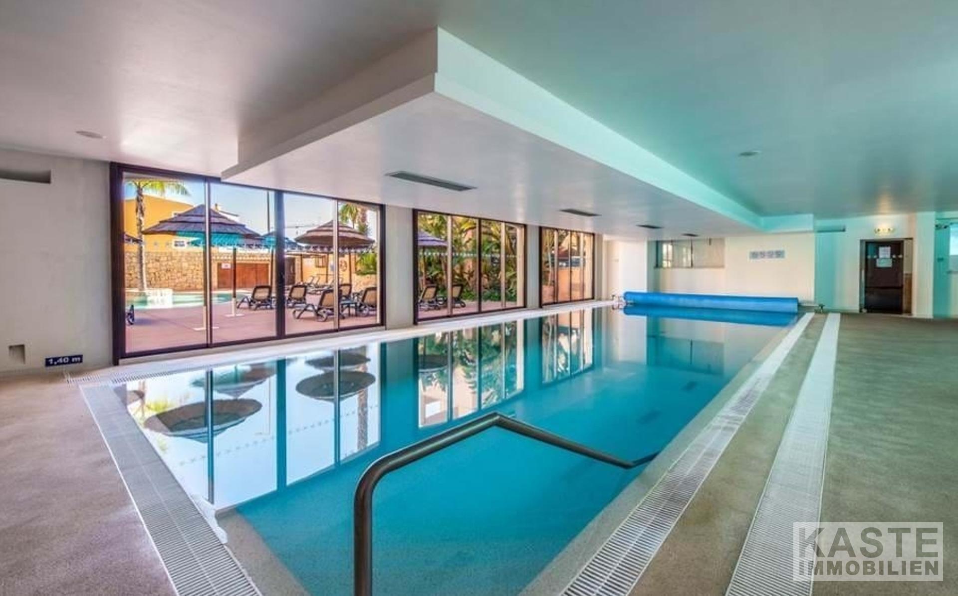 Während der Wintermonate werden Sie die Vorzüge des voll ausgestatteten Fitnessstudios und des beheizten Innenpools mit Jacuzzi und Sauna zu schätzen wissen. Dieses Apartment wird komplett möbliert verkauft, bis auf wenige persönliche Gegenstände. Sie können es also sofort nach dem Kauf genießen, ohne noch etwas besorgen zu müssen. Die Annehmlichkeiten sind beeindruckend und umfassen eine voll ausgestattete Markenküche, Fußbodenheizung, eine Klimaanlage mit Umkehrfunktion, sowie einen eigenen Tiefgaragenstellplatz und einen geräumigen abschließbaren Abstellraum zur persönlichen Nutzung.