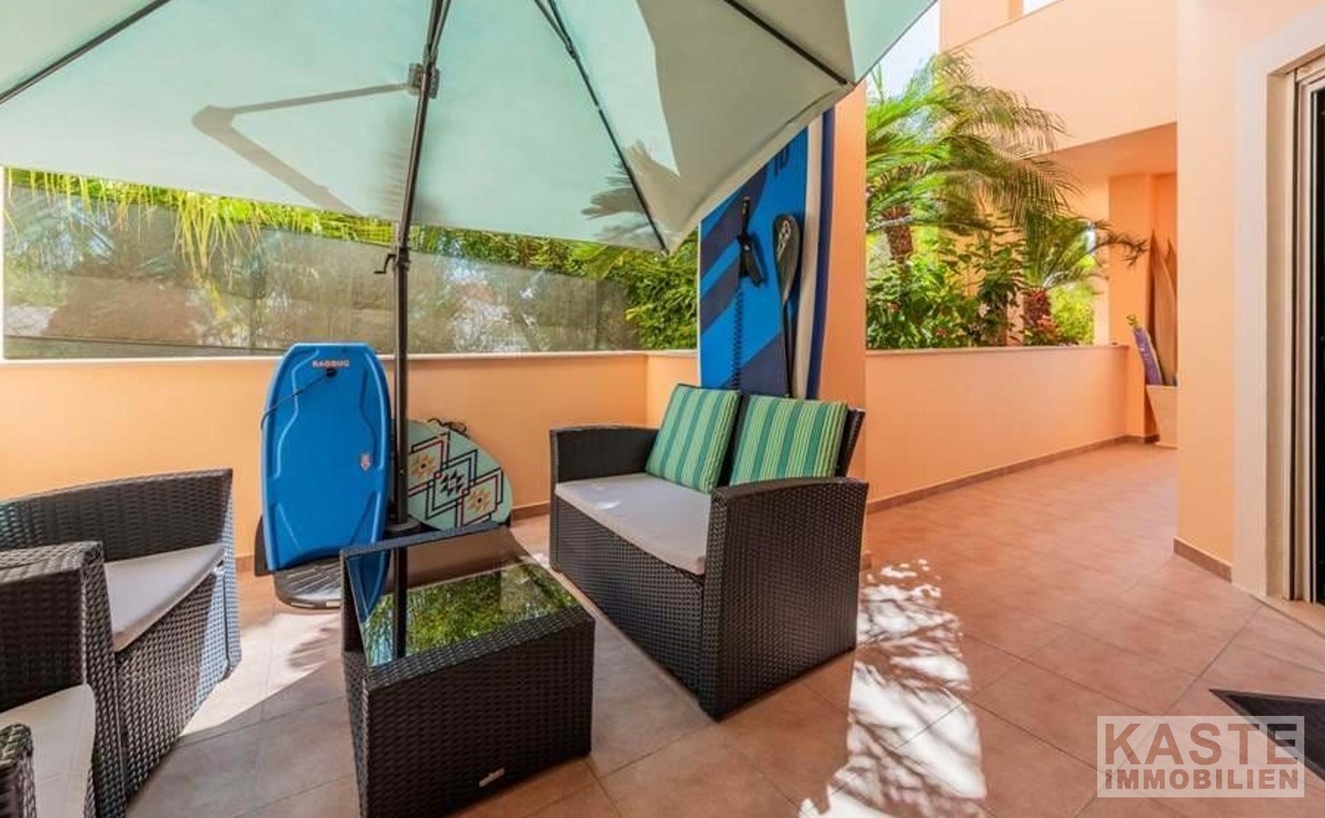 Die Wohnung verfügt über eine großzügige Terrasse, die sich vom Wohnzimmer bis zum Schlafzimmer erstreckt, sowie eine weitere kleinere Terrasse direkt vor der Küche. Dieses luxuriöse Anwesen erfreut sich großer Beliebtheit bei Käufern, die eine Ferienimmobilie mit Vermietungspotenzial suchen, ist jedoch auch perfekt für diejenigen, die es dauerhaft nutzen möchten. Dies liegt daran, dass es nicht nur erstklassigen Komfort und hochwertige Ausstattung bietet, sondern auch Zugang zu einer Vielzahl von Gemeinschaftseinrichtungen. Darüber hinaus gehört ein fantastisches Restaurant zum Komplex, sodass Sie alle Annehmlichkeiten vor Ort haben.