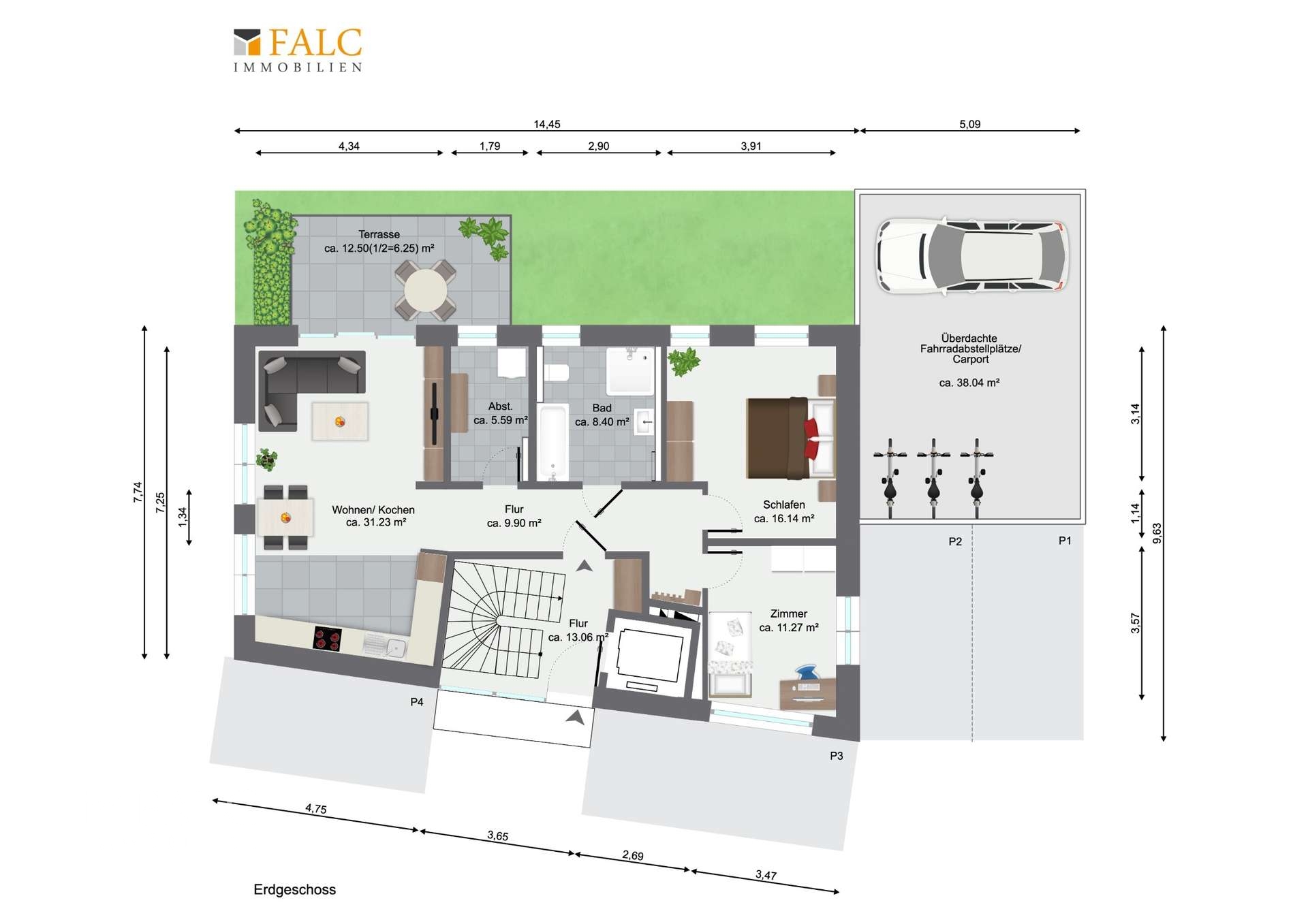 Abgerundet wird dieses Wohnangebot durch einen eigenen Stellplatz sowie eine überdachte Fahrradabstellmöglichkeit.